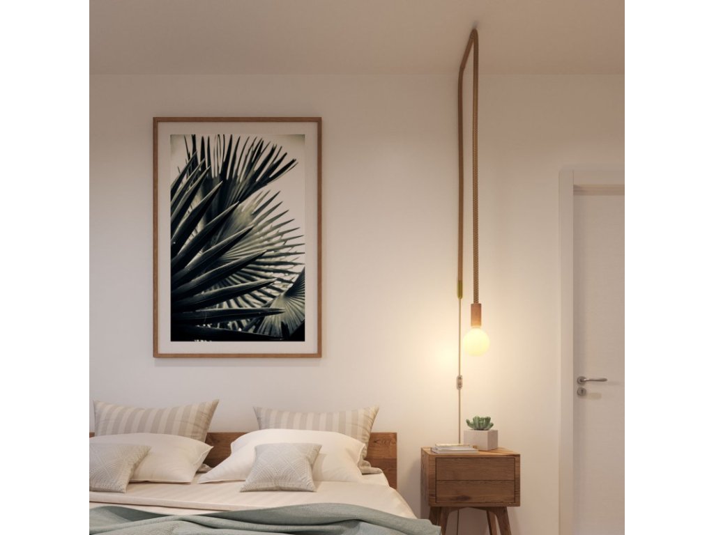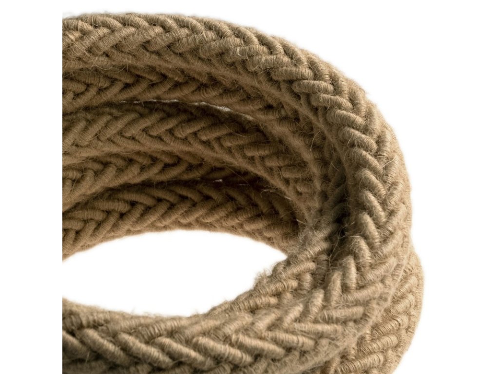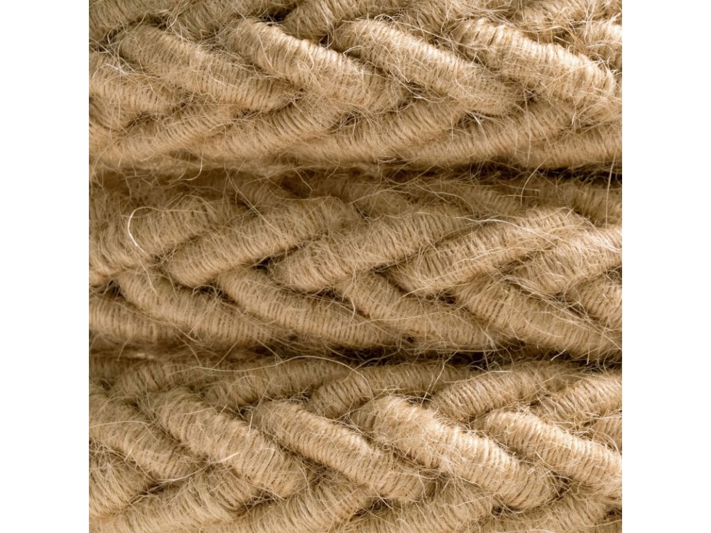 Textilný elektrický kábel pre svietidlá sme premenili na lanový kábel. Tento kábel z jutového lana 2XL je vybavený dvojitým poťahom: okrúhly elektrický kábel pokrytý jutou RN06 je ešte raz opletený špirálovým poťahom z juty, čím dosahuje vonkajší priemer 24 mm. Nevzdávajte sa krásy lanového kábla 2XL! Okrúhly kábel 2x0,75 pokrytý jutou RN06 vedie vo vnútri ďalšieho špirálovo opleteného kábla: preto môžete s káblom zaobchádzať ako s akýmkoľvek iným káblom bez toho, aby ste sa museli starať o to, ako ho pripojiť. Môžete použiť lanový kábel 2XL pokrytý jutou, ktorý ladí k stropnému baldachýnu a objímke z prírodného alebo lakovaného dreva. Vytvoríte tak závesné svetlo s veľkým efektom. 100% vyrobené v Taliansku.