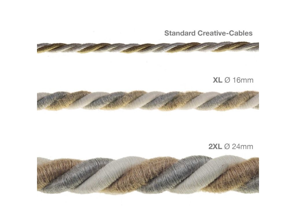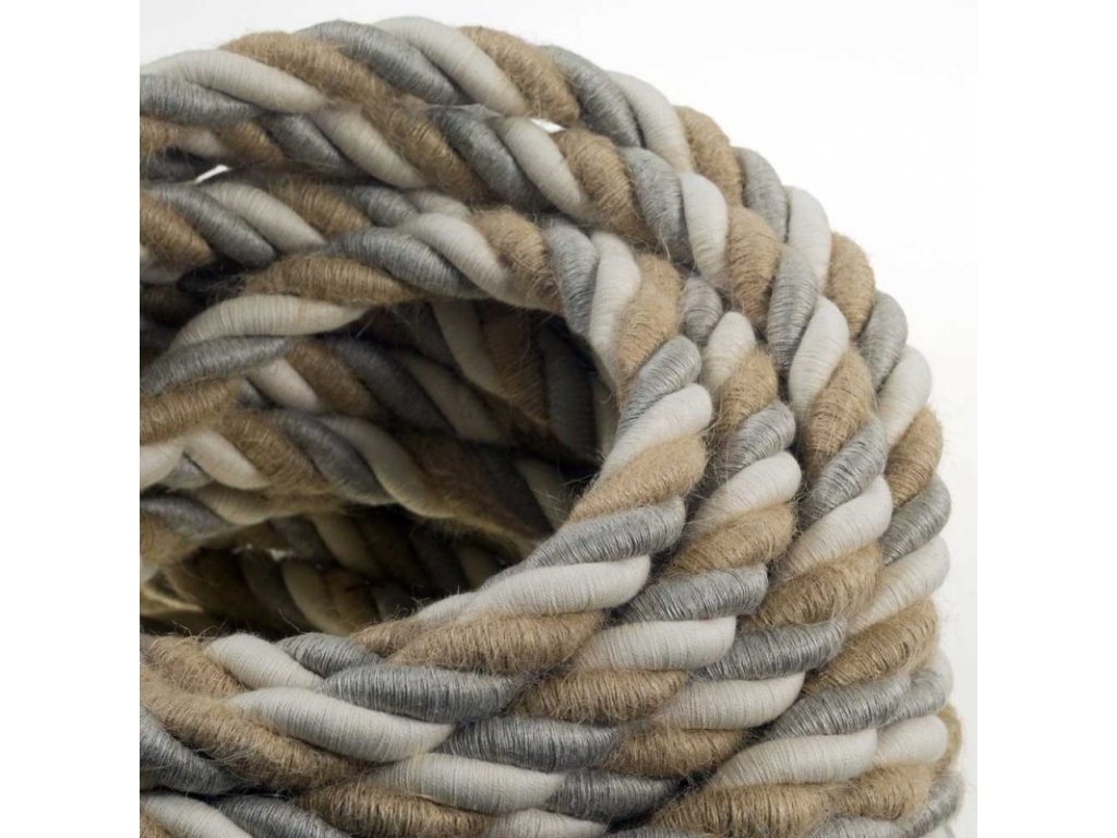 2XL elektrický kábel 3x0,75 country potiahnutý jutou, ľanom a bavlnou, priemer 24 mm