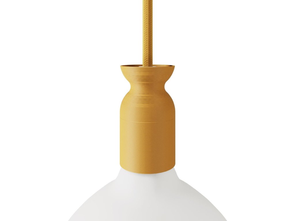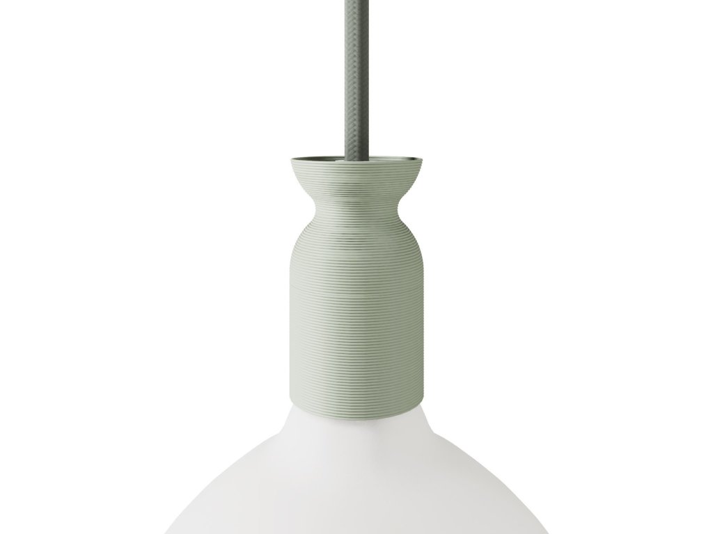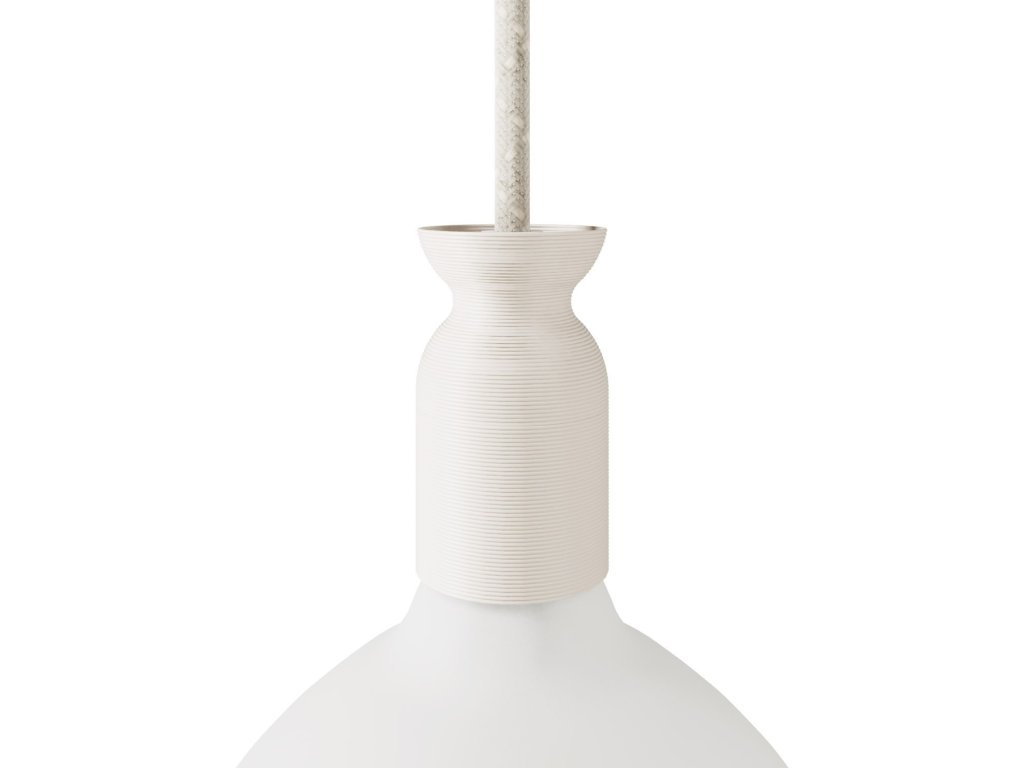 Táto objímka na lampu je vyrobená z recyklovaného plastu pomocou 3D tlače a predstavuje inovatívny dizajnový prvok, ktorý v sebe spája estetiku a udržateľnosť. Vďaka svojej ekologickej štruktúre, netradičnému tvaru, recyklovanému materiálu a širokej škále farieb môže táto objímka premeniť osvetlenie každej miestnosti, dodať jej šarm a prispieť k udržateľnejšej budúcnosti.