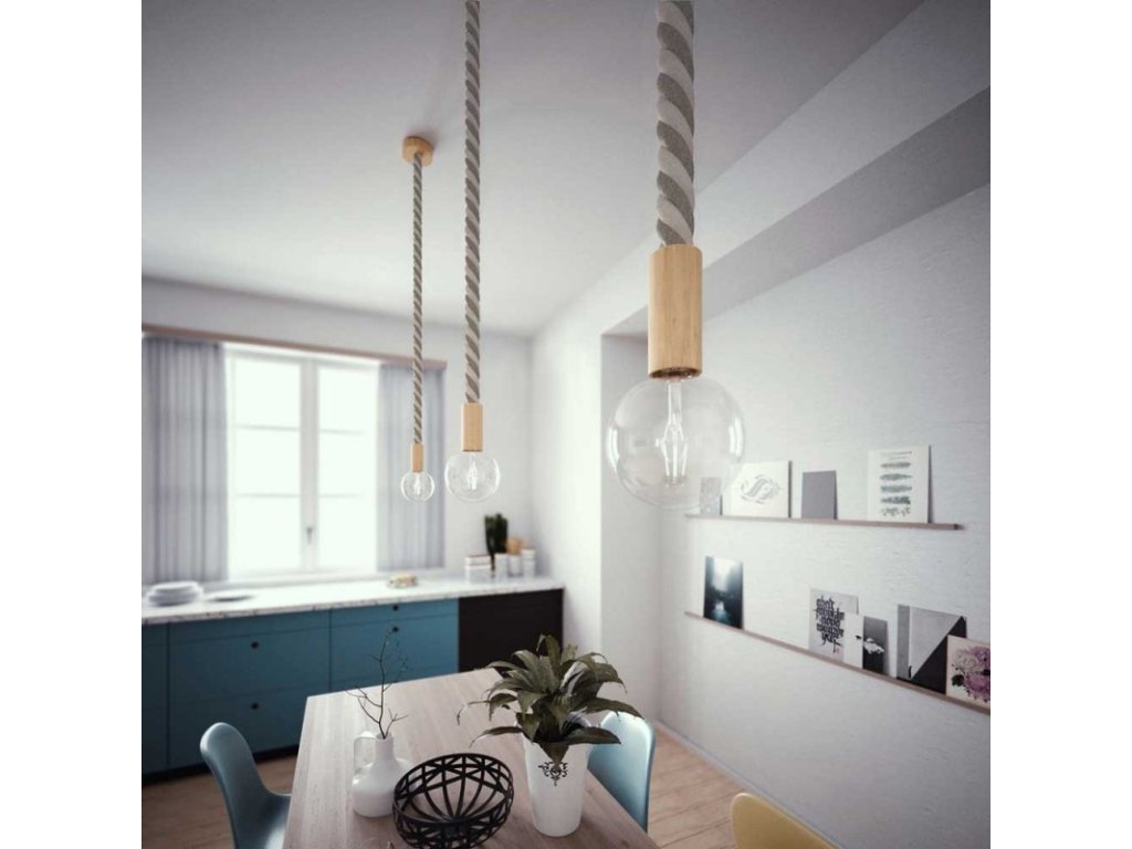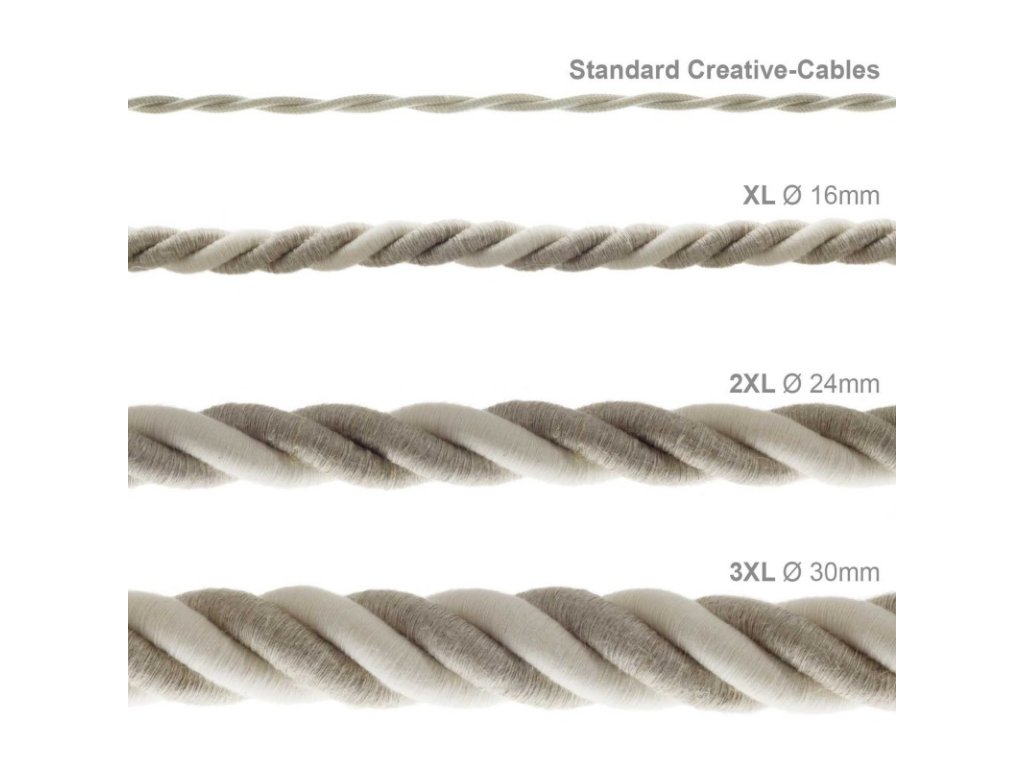 Elektrický kábel sa premenil na elektrické lano. Elektrický kábel je potiahnutý jemnou vatovinou, bavlnou a ľanom na dosiahnutie efektu lana s priemerom 30 mm. Tento 3XL elektrický kábel v spojení s našou novou drevenou objímkou a dreveným stropným baldachýnom môžete použiť na vytvorenie skutočne jedinečného svietidla. 100% Vyrobený v Taliansku.