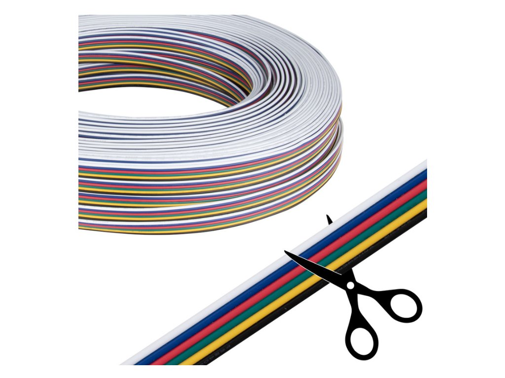 6-žilový kábel od McLED s vodičmi AWG 20. Kábel obsahuje šesť medených vodičov - červený, žltý, zelený, modrá, biela a čierny s prierezom 0,5 mm² Používa sa na pripájanie a prepájanie RGB+CCT LED pásikov. vzniká priechodom prúdu.