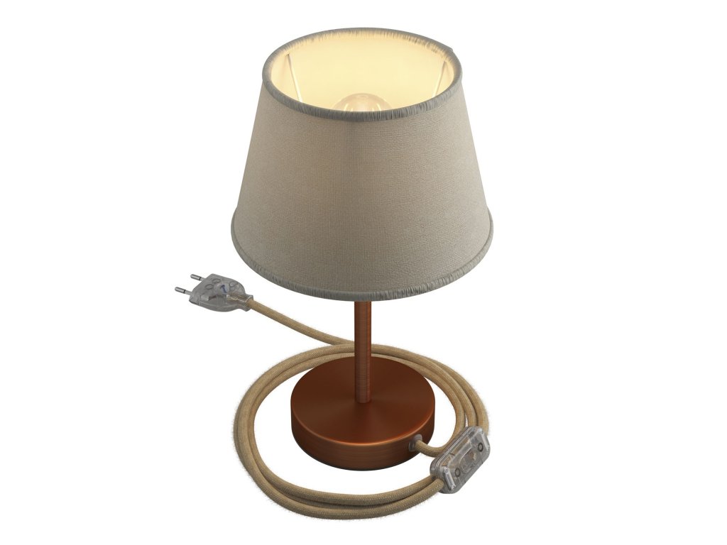 Alzaluce je kovová stolná lampa pripravená na použitie, je ideálna na osvetlenie spální, spoločenských miestností alebo ako príjemný doplnok do Vášho čítacieho kútika. Dizajn tejto lampy na nočný stolík tvorí tienidlo Impero s charakteristickými líniami a retro nádychom. Je ako stvorená pre milovníkov tradičného a elegantného štýlu. Tienidlo je 100% vyrobené v talianskom Toskánsku, v dielni ktorá sa špecializuje na remeselnú výrobu tienidiel. Vďaka objímke so závitom E27, textilnému káblu, predlžovacej trubičke, vypínaču a dvojpólovej zástrčke sa Alzaluce skvele hodí ku všetkým žiarovkám so závitom E27 z nášho katalógu. Alzalucia si môžete zostaviť podľa svojich prianí. Vyberte si z povrchových úprav a rôznych výšok tú, ktorá sa Vám páči najviac. Všetky ďalšie kombinácie sú možné na vyžiadanie, takže si môžete vytvoriť stolnú lampu presne podľa svojich predstáv!