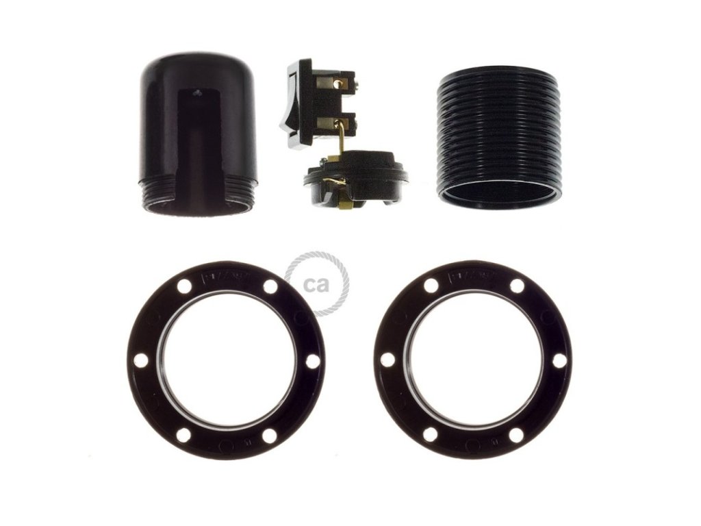 Bakelitová objímka E27 s vypínačom as dvoma krúžkami pre tienidlo je užitočná na zostavenie nástennej, stolnej alebo stropnej lampy, ktorú môžete doplniť o tienidlo. Bakelit bol pomenovaný po svojom vynálezcovi a jedná sa o termosetovú živicu, ktorá nám pripomína telefóny, rádiá a ďalšie predmety z 50. a 60. rokov. Je to ľahký a odolný materiál: pokiaľ je natretý, stáva sa veľmi lesklým! Vypínač na lampe umožňuje zapnúť alebo vypnúť svetlo, a to aj v prípadoch, keď nie je k dispozícii nástenný, alebo in-line vypínač.
