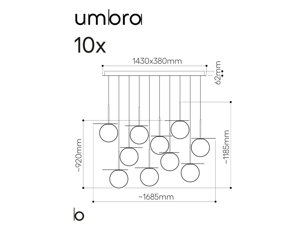V tejto možnosti je možné nakombinovať ľubovoľných 10 svietidiel zo série Umbra bez baldachýnu