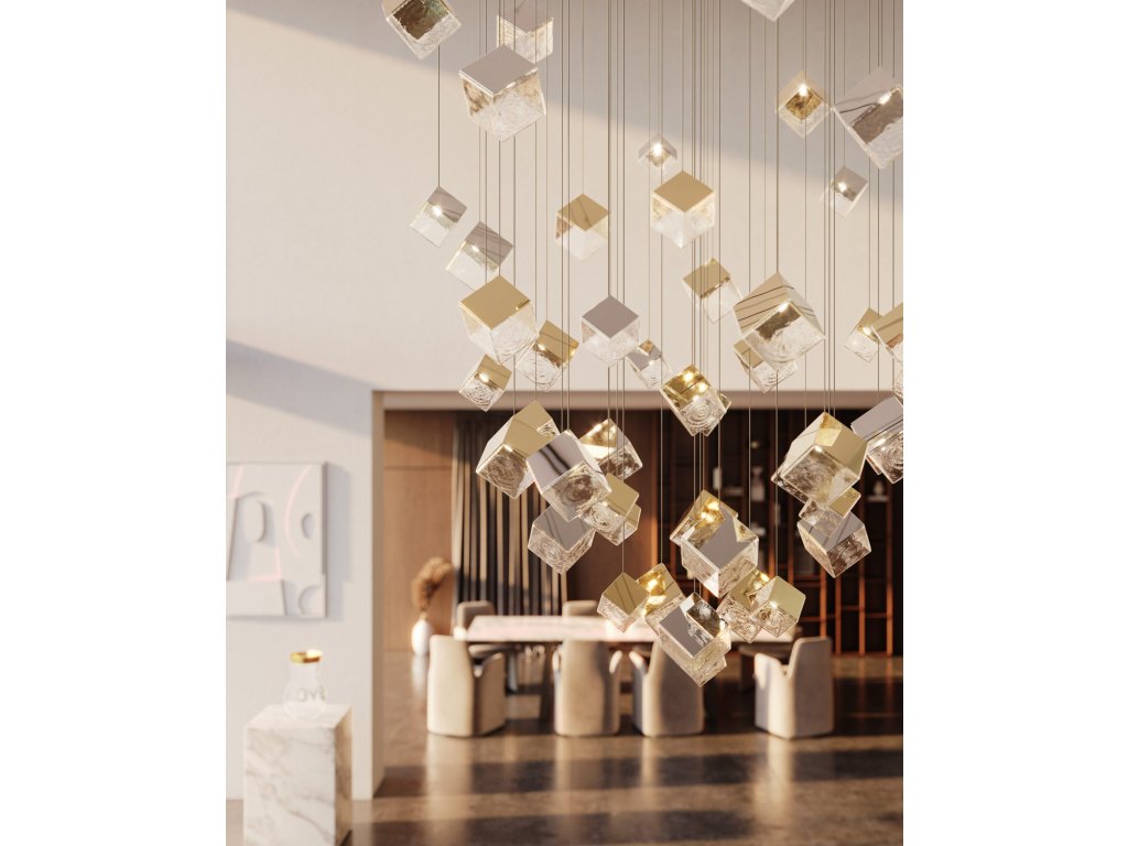Kolekcia Pyrite bola inšpirovaná pyritom, zlatým ohnivým kameňom v tvare dokonalej kocky, zatiaľ čo strieborná verzia odtieňa odráža jeho inšpiráciu v kryštáloch soli. Lesklý povrch tejto ručne fúkanej krištáľovej kocky je z troch strán uzavretý lešteným kovovým komponentom v striebornom alebo zlatom odtieni. Svietidlo je možné kombinovať do jedinečných svetelných konštelácií.Toto svietidlo rozžiari obývaciu izbu, spálňu, pracovňu alebo aj konferenčnú miestnosť. Je tiež perfektnou voľbou do spoločenských a reprezentatívnych priestorov.Tento produkt sa predáva v dvoch farebných variantoch a dvoch veľkostiach (large a small).
