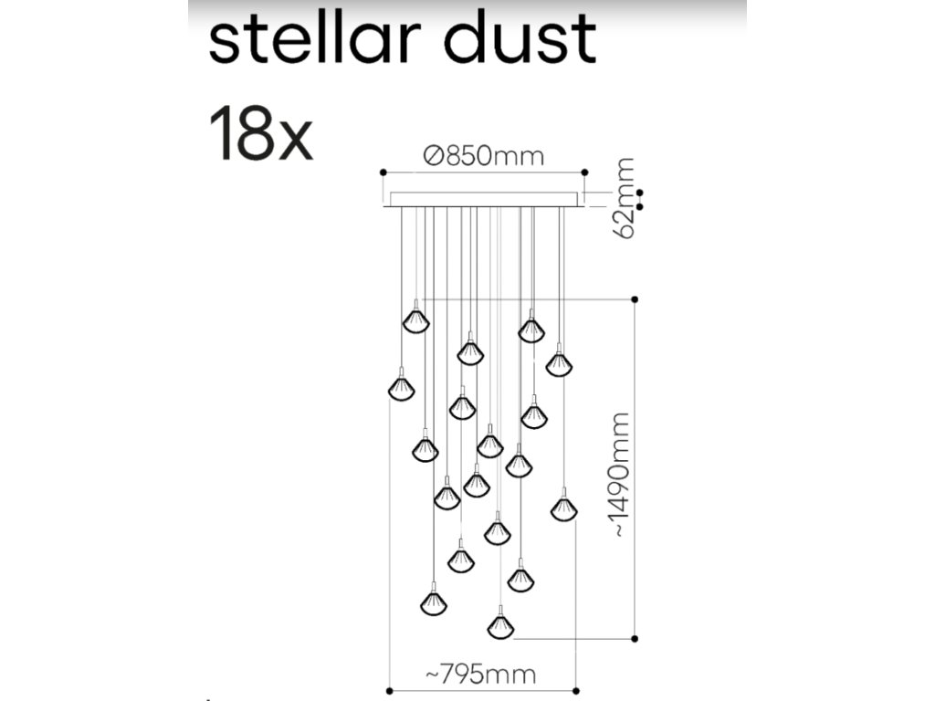 Jedná sa o montúru ku svietidlám značky Bomma ze séria Stellar Dust pre kombináciu 18 svietidiel.