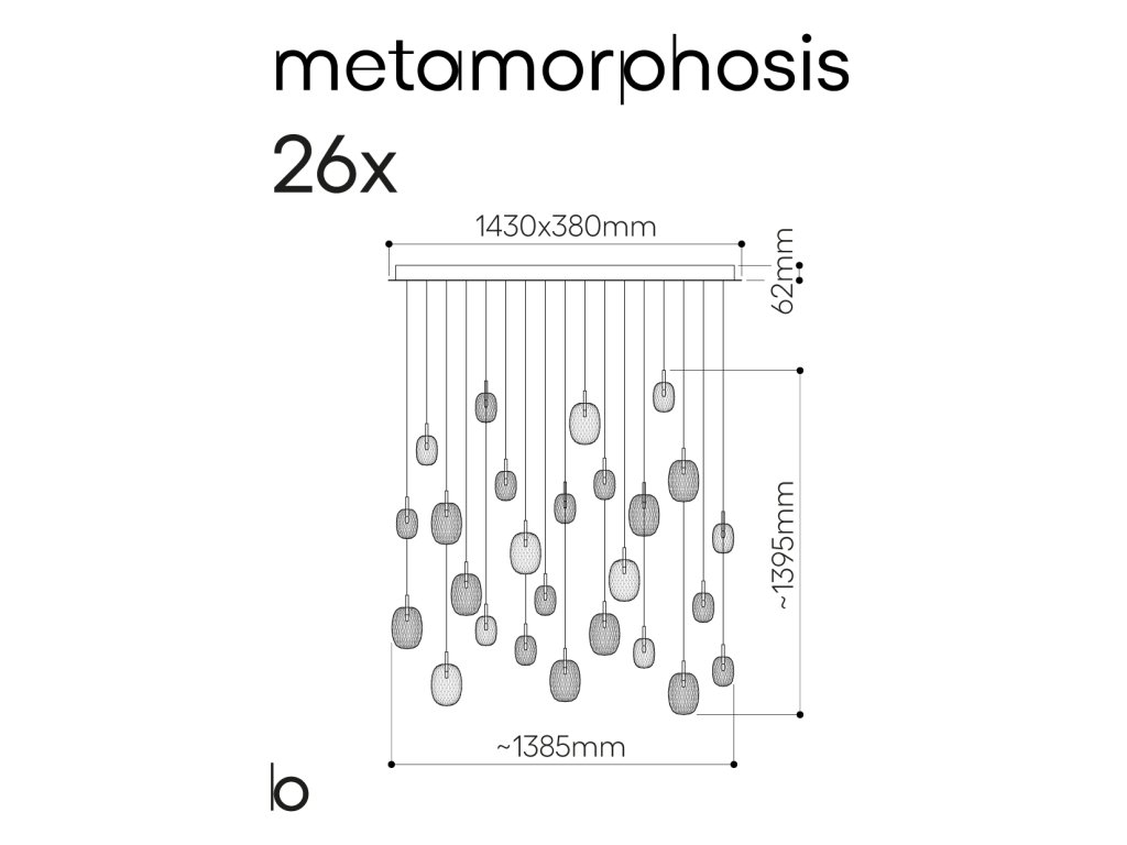 Jedná sa o montúru k svietidlám značky Bomma zo série Metamorphosis large, small bez baldachýnu, pre kombináciu 26 svietidiel.