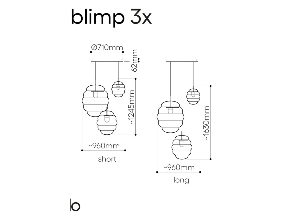V tejto možnosti je možné nakombinovať ľubovoľné 3 svietidlá zo série Blimp bez baldachýnu.