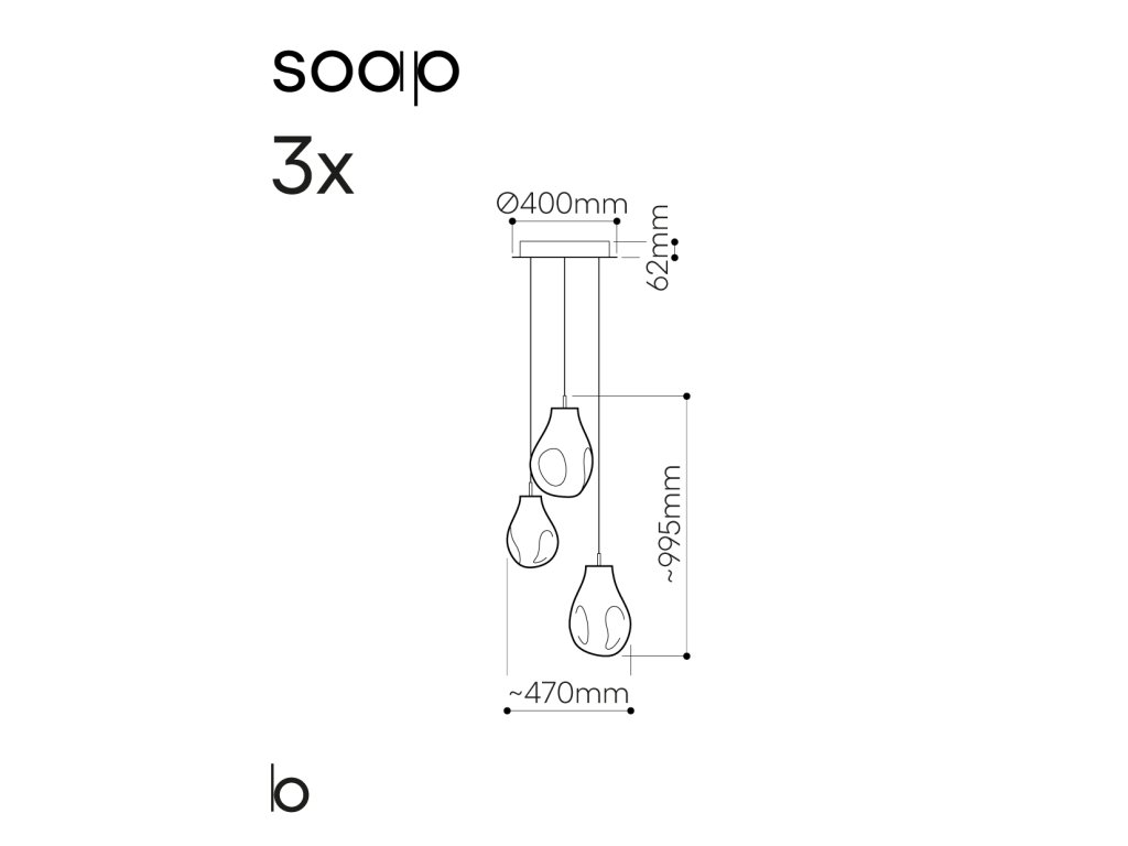 V tejto možnosti je možné nakombinovať ľubovoľné 3 svietidlá zo série Soap Small alebo Soap Large bez baldachýnu