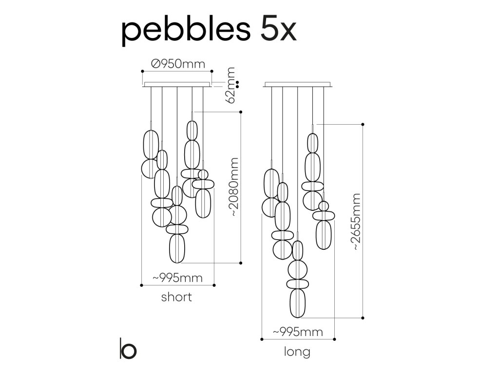 V tejto možnosti je možné nakombinovať ľubovoľné 3 svietidlá zo série Pebbles&large bez baldachýnu alebo Pebbles small bez baldachýnu.