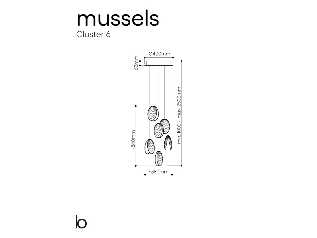 V tejto možnosti je možné nakombinovať ľubovoľných 6 svietidiel zo série Mussels bez baldachýnu.