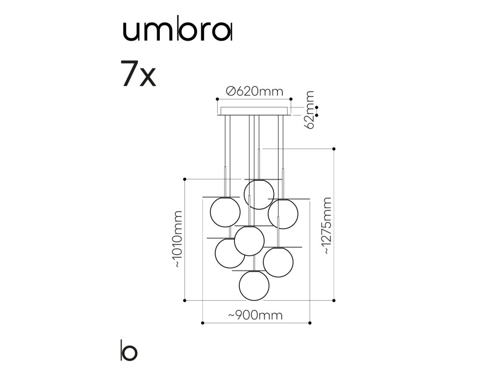V tejto možnosti je možné nakombinovať ľubovoľné 7 svietidlá zo série Umbra bez baldachýnu.