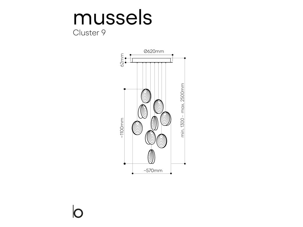 V tejto možnosti je možné nakombinovať ľubovoľných 9 svietidiel zo série Mussels bez baldachýnu.