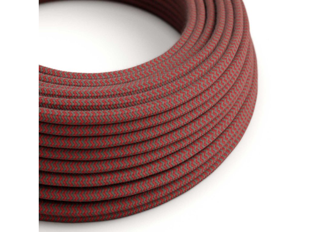 Bavlnený textilný elektrický kábel, RZ28 ohnivo červený a sivý cik cak