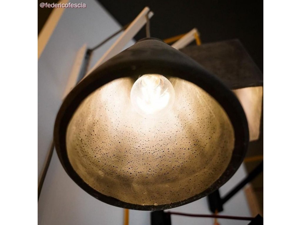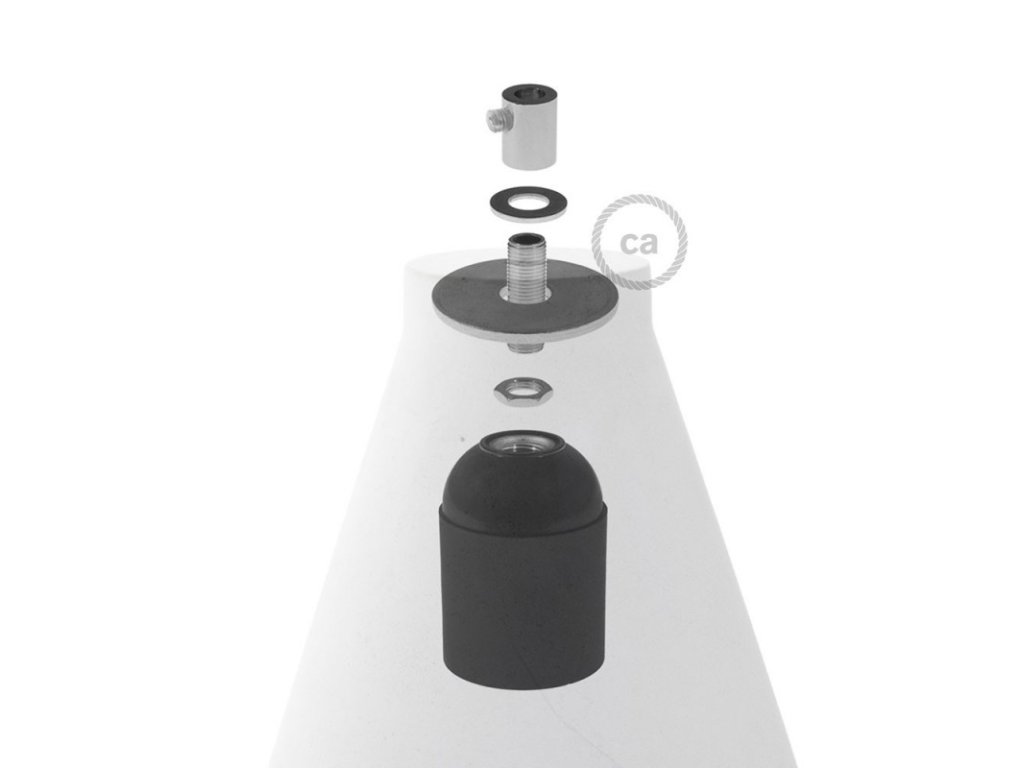 Žiarovka nie je súčasťou balenia. Betónové tienidlo Funnel dodávame v zostave zloženej zo závitovej tyčky, káblovej svorky a hladkej objímky z bakelitu s uzemnením, IMQ certifikované.