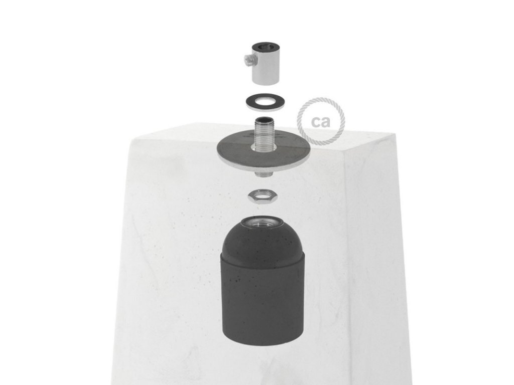 Upozornenie! Žiarovka nie je súčasťou balenia. Betónové tienidlo Prisma dodávame v zostave zloženej zo závitovej tyčky, káblovej svorky a hladkej objímky z bakelitu s uzemnením, IMQ certifikované.