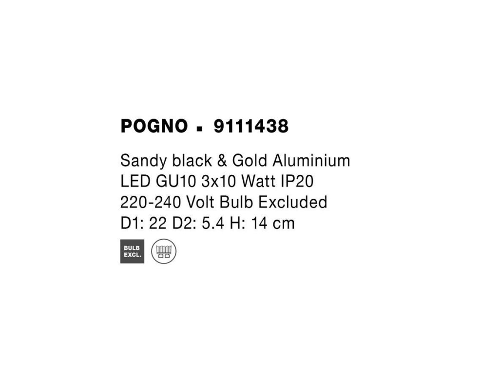 Bodové svietidlo POGNO čierna a zlatý hliník GU10 3x10W