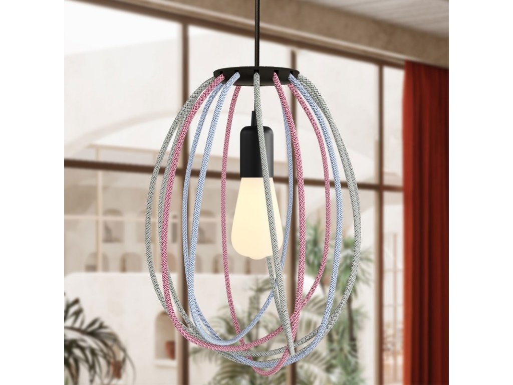 Všestranné, ekologické a kreatívne tienidlo. Predstavujeme Cablò, základ (držiak) z recyklovaného plastu, vyrobený a patentovaný exkluzívne pre Creative-Cables Fabriziem Alessiem, dizajnérom z Turína. Odstrižky káblov, ktoré by inak zostali nevyužité, hľadajú nový život. Pre farebné tienidlo, ktoré nikdy nebude rovnaké. Úplne čierne alebo s farebnými vzormi Pixel. V oboch prípadoch dostanete Cablo v čiernej verzii spolu so siedmimi 100cm dlhými textilnými káblami, ktoré vám pomôžu vytvoriť tienidlo podľa vášho vkusu; od zaujímavých geometrických obrazcov až po očarujúce kvetinový pôvab.