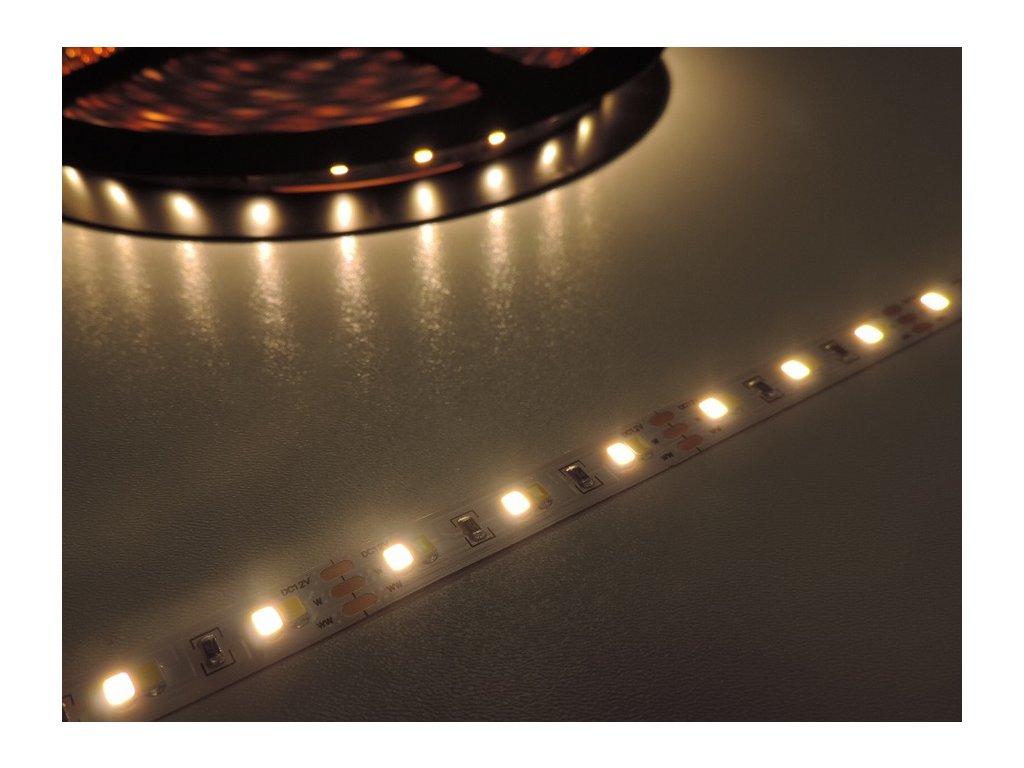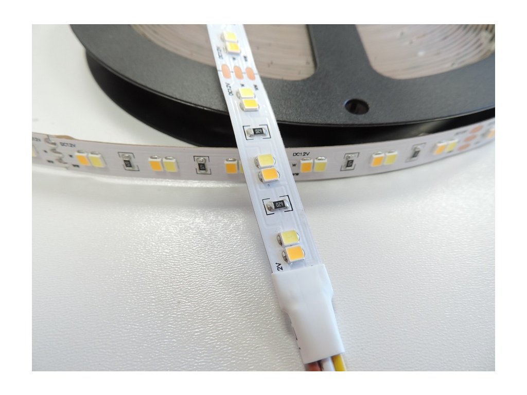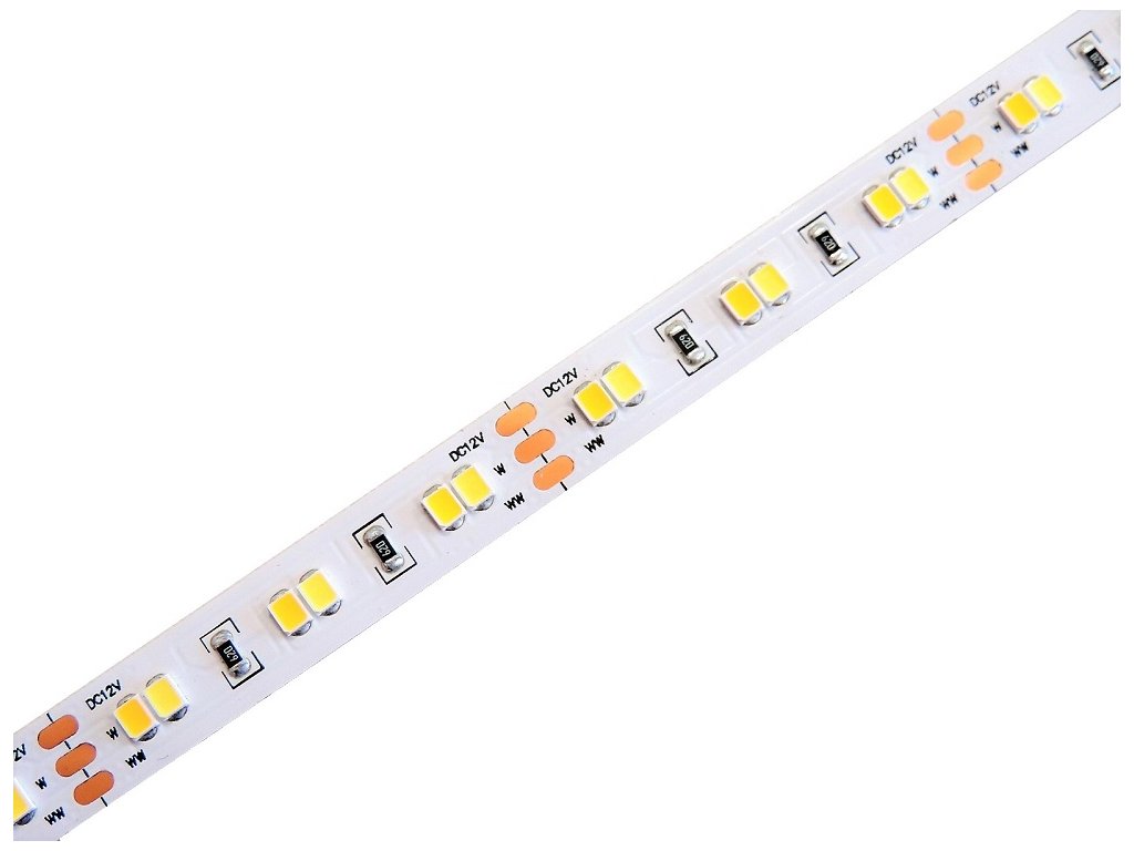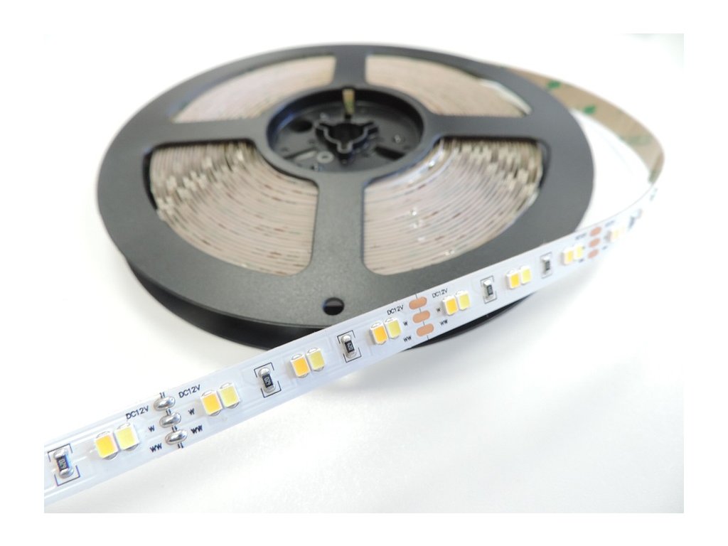 LED pásiky CCT majú možnosť nastaviť teplotu bielej farby. Toto nastavenie je možné vykonať pomocou ovládača, ktorý sa staví medzi samotný LED pásik a zdroj. V základe sú na LED pásiku vložené 2 druhy diód vo variante teplá a studená biela. Ovládačom môžete obe farby nezávisle zapínať, vypínať a stmievať. Pri spustení oboch farieb naraz dôjde k slúženiu oboch farebných teplôt a východisková farba je zhruba okolo 4500K. Nový rad LED pásika CCT, ktorý ponúka tie najlepšie vlastnosti z napäťových LED pásikov. Výborný pomer svetelného výkonu a podania farieb (CRI>80). Konštrukcia čipu: medená základňa potiahnutá striebrom, prepojenie čipu so základňou zlatým drôtikom. Dvojvrstvové medené PCB (nosič LED diód). Samolepiaca páska 3M radu 300 LSE. LED pásik odporúčame inštalovať na kov (hliníkový profil), ktorý slúži ako chladič.
