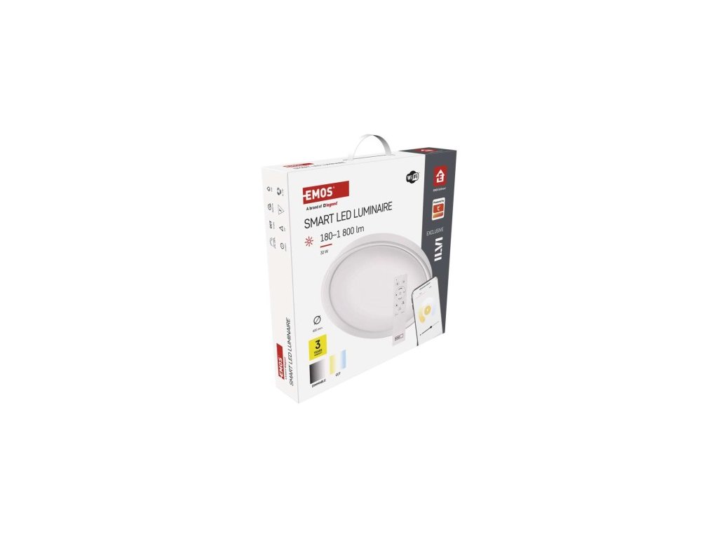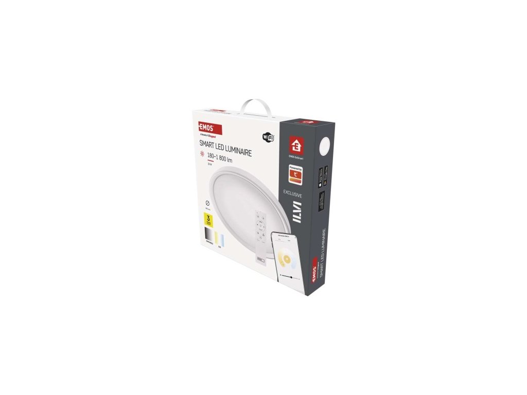 farba svetla: teplá biela–studená biela|farba tela: biela|diaľkový ovládač: áno (2× AAA, R03)|ďalšie funkcie: –|do chodby a na schodisko: áno|do dielne a garáže: ne|do kancelárie: áno|do kúpeľne: ne|do kuchyne: áno|do oku nemá senzor|flicker-free: áno|frekvencia: 50/60 Hz|index podania farieb (CRI): Ra > 80|jazyky aplikácie: EN, SK, SK, PL, DE, HU, SI, FR, + 60 ďalších jazykov|kategória: EXCLUSIVE|kompatibilita: EMOS GoSmart, DL systém|krytie: IP20|materiál difúzora: plast (PMMA)|materiál LGP: neuvádza sa|materiál tela: oceľový plech|montážny otvor: neuvádza sa|možnosť stmievania: áno|náhrada za žiarovku: 110 W|napätie: 220–240 V|na záhradu a bal –|ovládanie hlasovými asistentmi: áno (Amazon Alexa, Google Assistant)|podporované OS: Android, iOS|pohybový senzor: neuvádza sa|prenosová frekvencia: 2,4 GHz Wi-Fi|príkon: 30 W|predajný obal: 1 ks, krabica|protokol: Wi-Fi|prud:| 400 × 70 mm|svetelná účinnosť: 60 lm/W|svetelný tok: 1 800 lm|teplota chromatickosti: 2 700–6 500 K|tvar: kruh|typ difúzora: mliečny|typ svietidla: klasické svietidlo|účinník: > 115°|umiestnenie: stropný/nástenné|výstupný prúd zo zdroja: 175 mA|záručná doba: 3 roky|zdroj svetla: LED|životnosť: 30 000 hodín|spôsob montáže: prisadenéDodatočné parametre