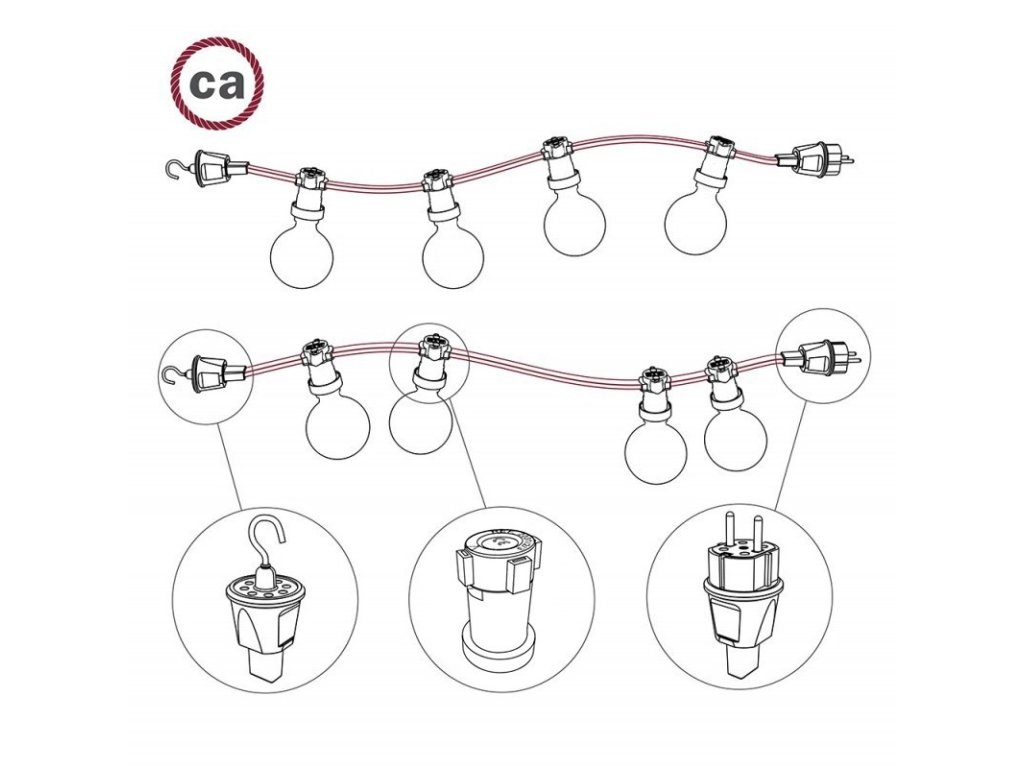 Táto svetelná reťaz je konfigurovateľným riešením od Creative-Cables na rozžiarenie vonkajšieho prostredia. Táto čierna Schuko zástrčka z termoplastu je špeciálne navrhnutá pre svojpomocné vytvorenie svetelnej reťaze. Čierna Schuko zástrčka z termoplastu, ideálna pre svetelnú reťaz, ktorú si môžete sami vytvoriť. Jednoducho sa zmontuje a demontuje iba jednou skrutkou, jednoduché zapojenie.