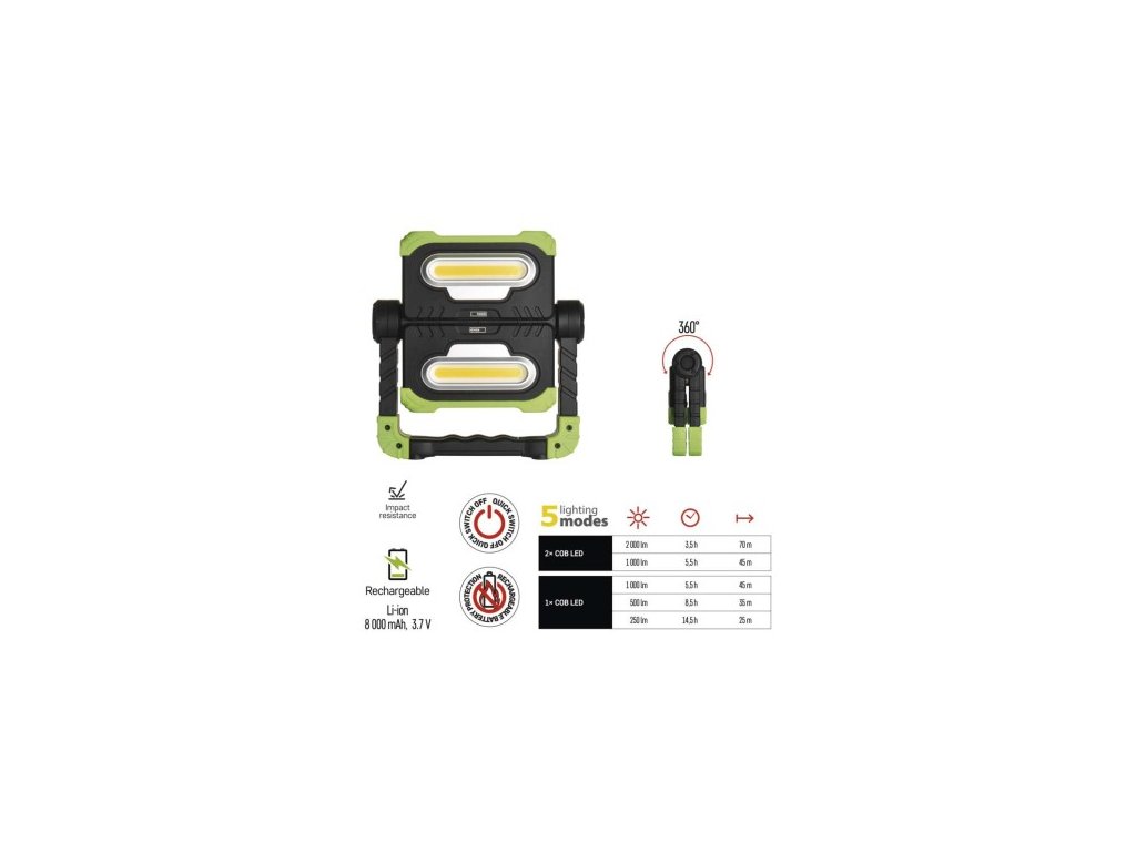 COB LED nabíjací pracovný reflektor P4536, 2000 lm, 8000 mAh