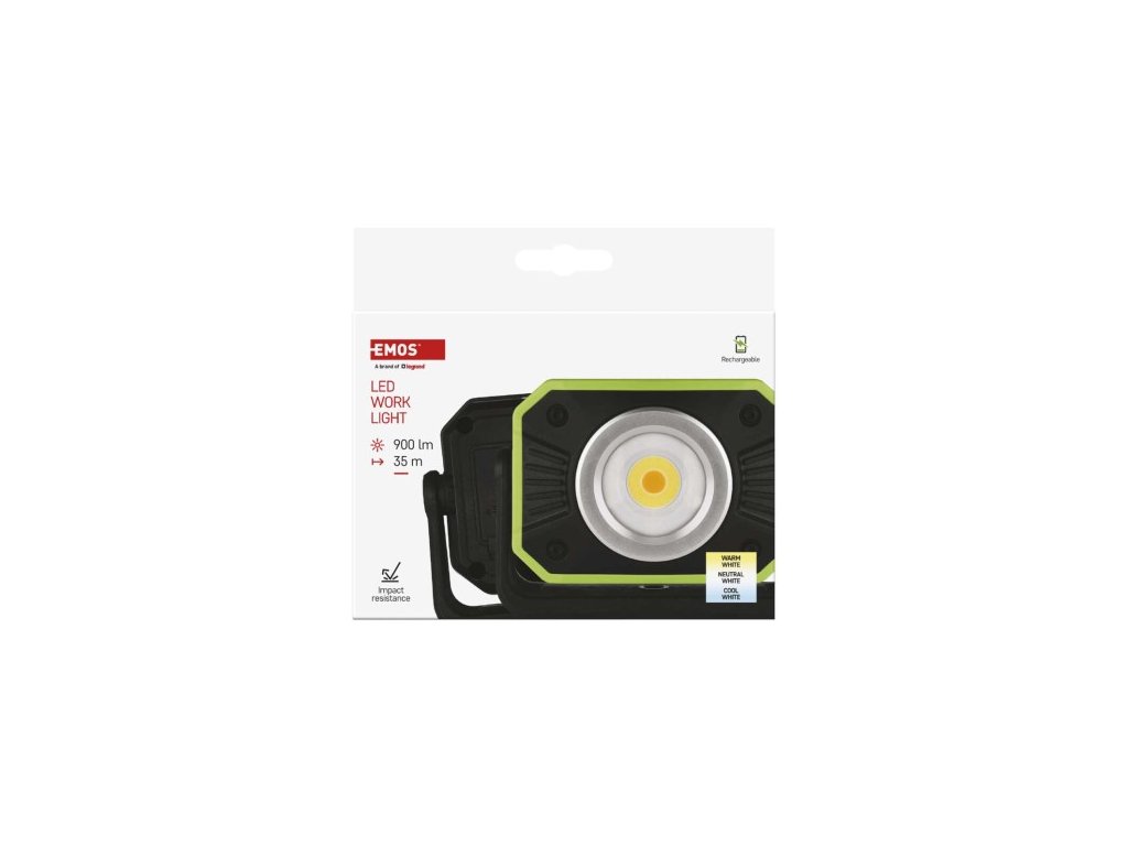 farba: čierno-zelená|batéria súčasťou balenia: áno|doba nabíjania: 4,5 h|doba svietenia: 3,5–12,5 h|doba svietenia detail: COB LED 100 % – 3,5 h, COB LED 70 % – 5 h, COB LED 50 % – 7 h, COB LED: 100 % – 35 m, COB LED 70 % – 30 m, COB LED 50 % – 25 m, COB LED 25 % – 20 m|fokus: ne|hmotnosť: 325 g|LED indikácia nabíjania: áno|LED indikácia stavu akumulátora: áno|materiál: plast 900 lm|nabíjací: áno|napájanie: Li-Ion|nárazuvzdornosť: áno|počet režimov svietenia: 16|príslušenstvo: USB kábel|predajný obal: 1 ks, krabica|režimy svietenia: neuvádza sa|rozmer: 125 × 45 × 95 mm|špec tok: COB LED 100% - 900 lm, COB LED 70% - 670 lm, COB LED 50% - 450 lm, COB LED 25% - 225 lm|typ batérie: 4 400 mAh/3,7 V|typ napájacieho konektora: USB C| stojanček, háčik|záručná doba: 2 roky|zdroj svetla: COB LED studená + COB LED teplá|značka: EMOSDodatočné parametre