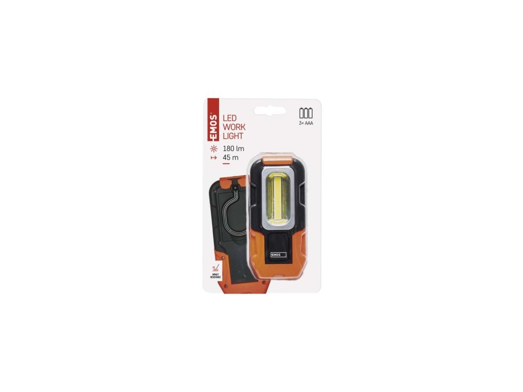 farba: čierno-oranžová|batéria súčasťou balenia: ne|doba nabíjania: neuvádza sa|doba svietenia: 16–24 h|doba svietenia detail: COB LED 100 % – 16 h, COB LED 50 % – 24 h | ne|hmotnosť: 110 g|LED indikácia nabíjania: neuvádza sa|LED indikácia stavu akumulátora: neuvádza sa|materiál: ABS plast|maximálny dosvit: 45 m|maximálny svetelný tok: 180 lm|nabíjací: ne|navádzanie: 3× AAA|nárazuvzdornosť: nárazuvzdornosť: sa|predajný obal: 1 ks, blister|režimy svietenia: COB LED 100 %, COB LED 50 %|rozmer: 59 × 30 × 133 mm|špeciálne funkcie: neuvádza sa|svetelný tok: COB LED 100 % - 180 lm, COB LED 50 V)|typ napájacieho konektora: neuvádza sa|vodeodolnosť: ne|vybavenie: lámacia rukoväť, 1× hák, 2× magnet|záručná doba: 2 roky|zdroj svetla: COB LED|značka: EMOSDodatočné parametre