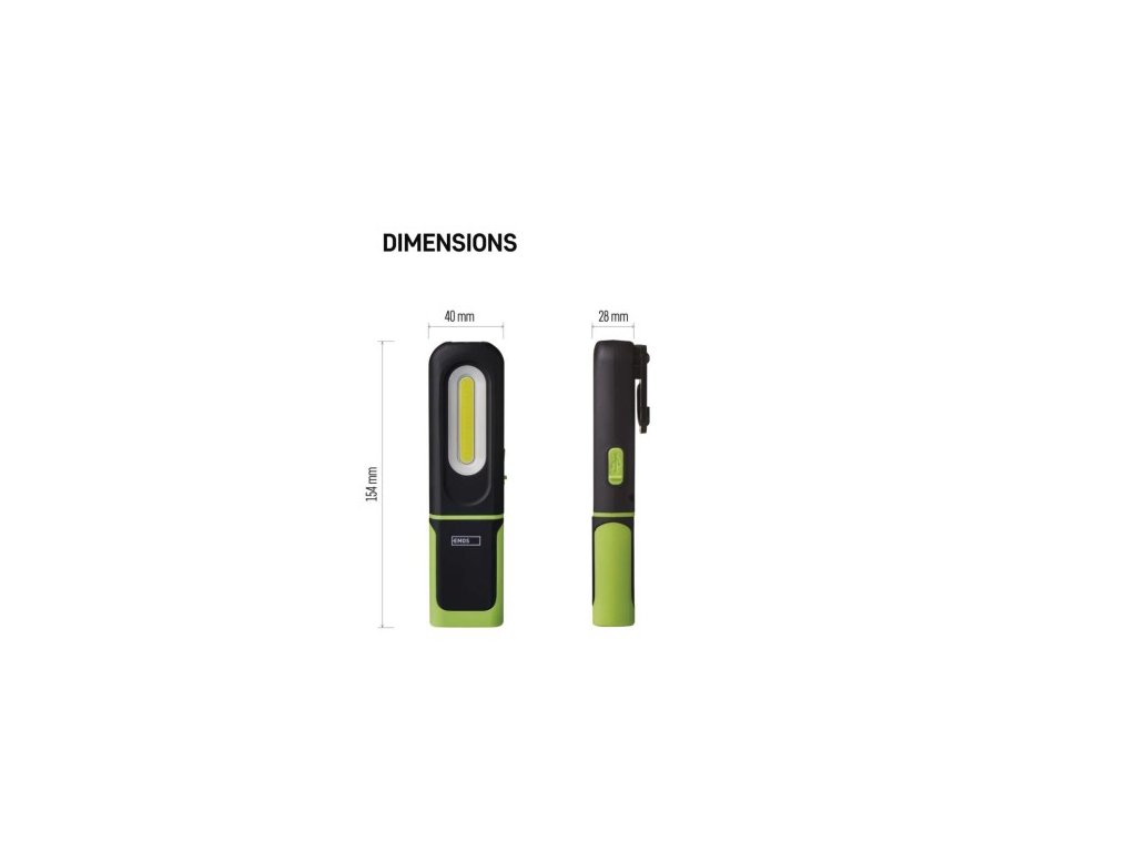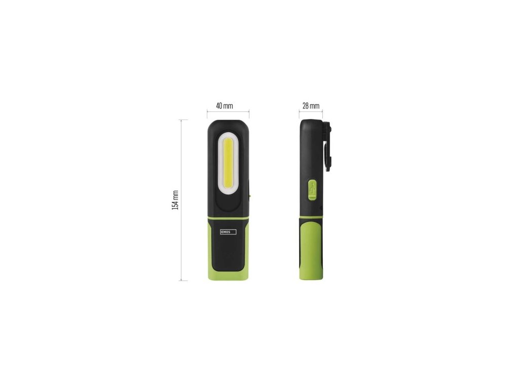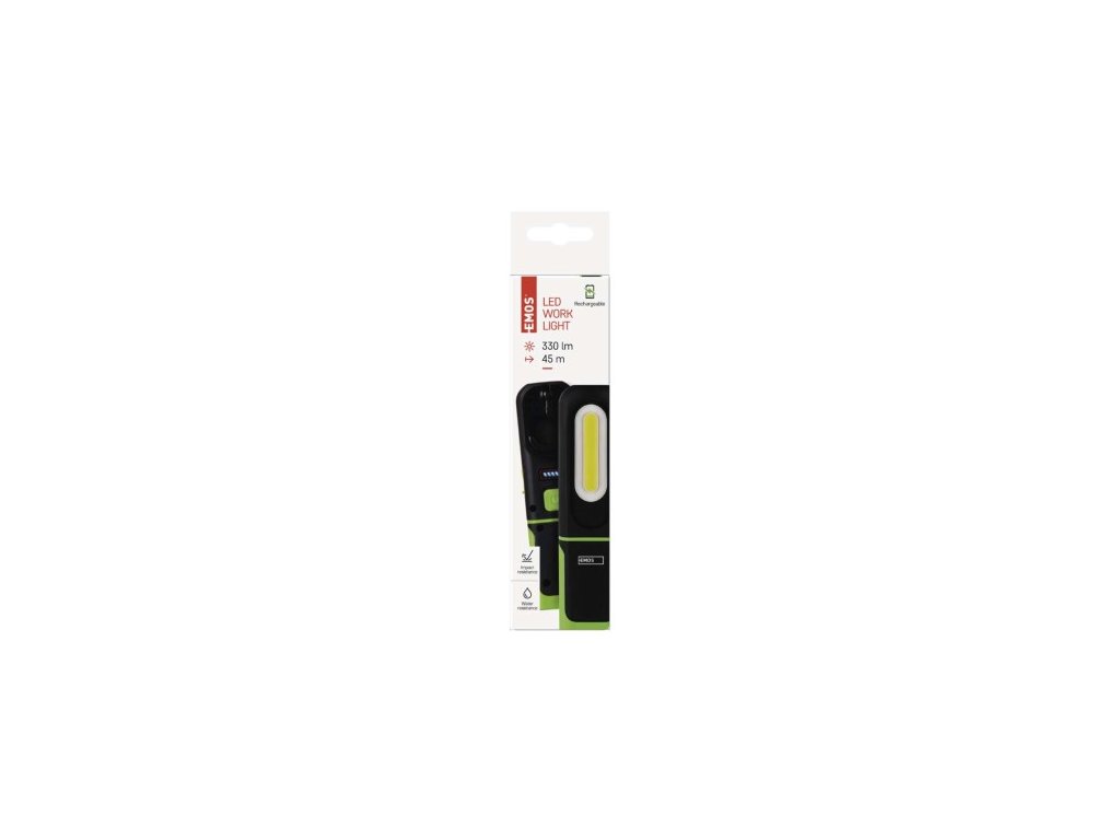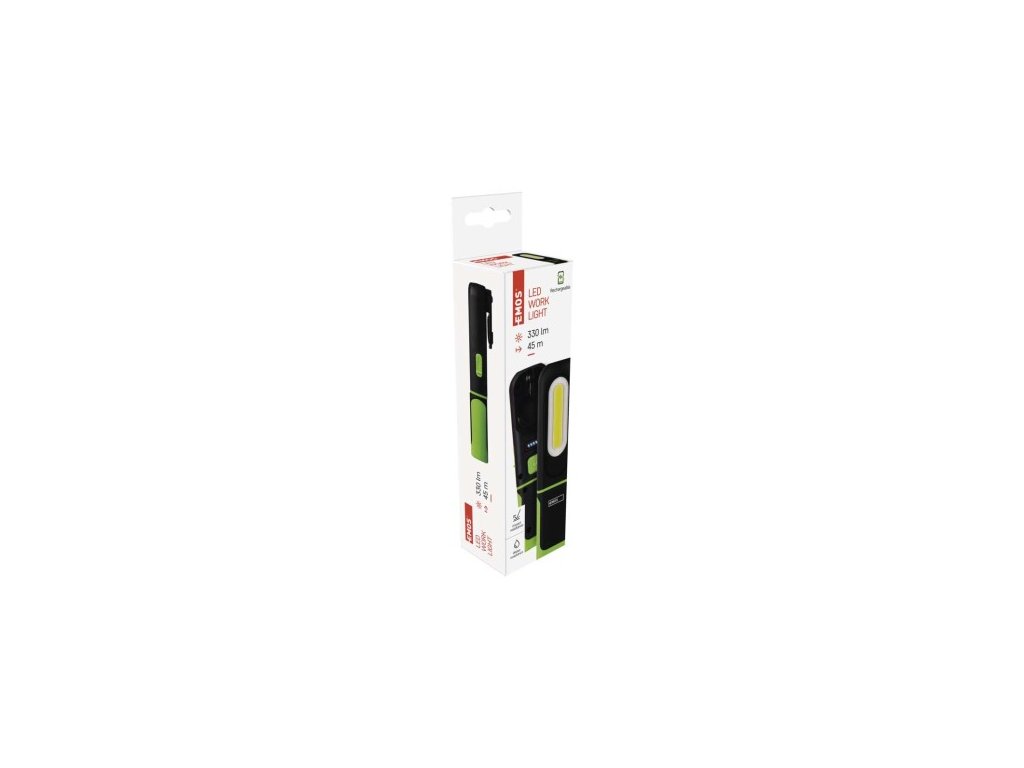 farba: zeleno-čierna|batéria súčasťou balenia: áno|doba nabíjania: 2–4 h|doba svietenia: 3–7 h|doba svietenia detail: COB LED 100 % – 3 h, COB LED 33 % – 5,5 h, SMD LED 100 % – 7 h | dosvit: COB LED 10 15 m, SMD LED 100 % – 45 m|fokus: ne|hmotnosť: 110 g|LED indikácia nabíjania: áno|LED indikácia stavu akumulátora: áno|materiál: ABS plast + guma|maximálny dosvit: 45 m|maximálny svetelný tok: 330 lmna Li-Ion|nárazuvzdornosť: áno|počet režimov svietenia: 3|príslušenstvo: USB kábel|predajný obal: 1 ks, krabica|režimy svietenia: COB LED 100%, COB LED 33%, SMD LED 100%|rozmer: 41 × 29 × 154 mm tok: COB LED 100% - 330 lm, COB LED 33% - 100 lm, SMD LED 100% - 60 lm | typ batérie: 1 200 mAh/3,7 V | typ napájacieho konektora: USB C | vodeodolnosť: áno (IP43) | vybavenie nakl. rukoväť, 1× klip, magnet, hák|záručná doba: 2 roky|zdroj svetla: COB LED + SMD LED|značka: EMOSDodatočné parametre
