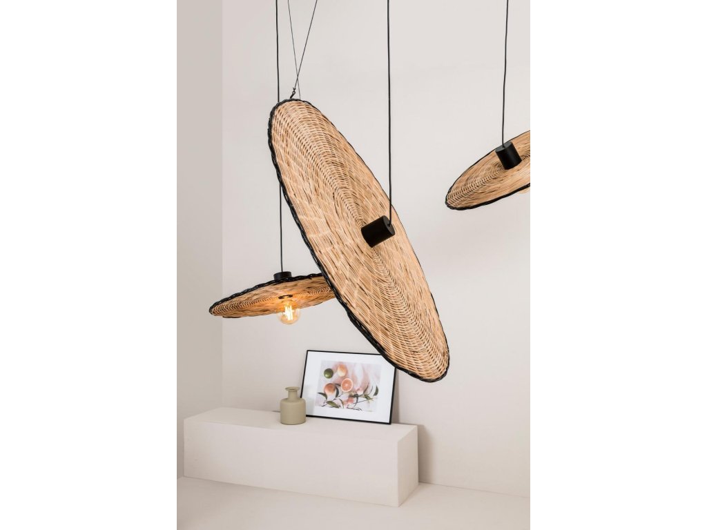 COSTAS 1000 závesné svietidlo, čierna / ratan - FARO