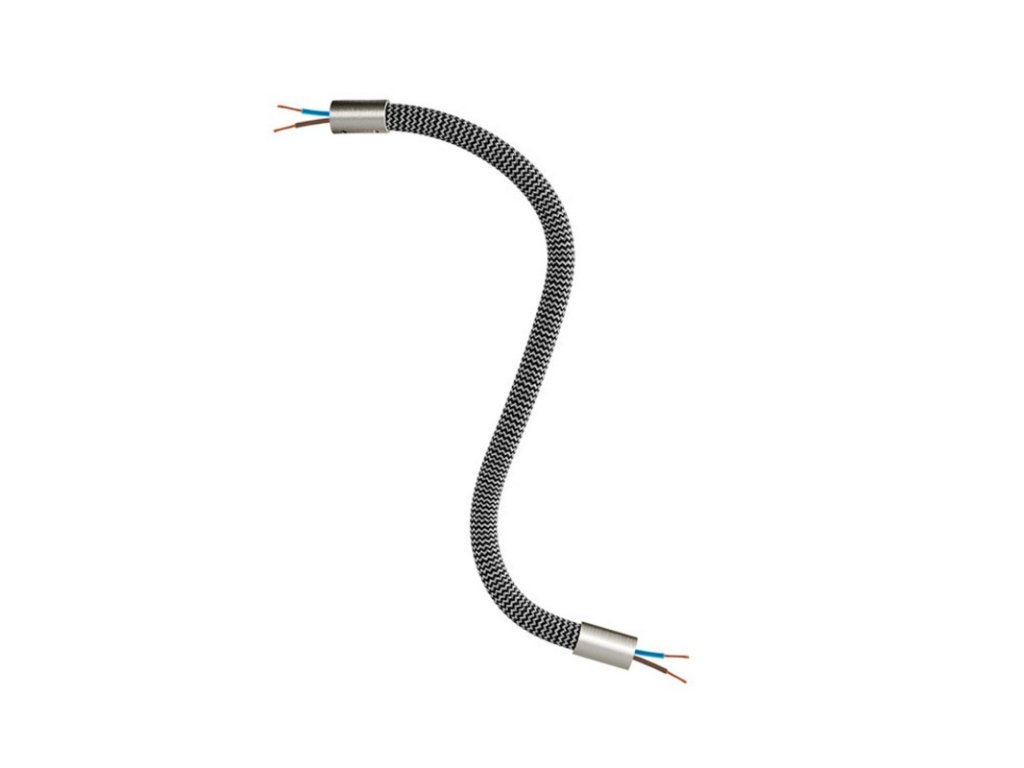 A žili flexibilne až do smrti. FLEX je ohybná trubica potiahnutá čierno striebornou textíliou a je ideálna pre vytváranie jednoduchých svietidiel i lustra s viacerými svetlami, ktoré sú inšpirované najodvážnejšími nápadmi, tými vašimi. Buďte kreatívni a navrhnite si svoj vlastný systém osvetlenia. So systémom FLEX, nastaviteľnou ohybnou trubicou s koncovou svorkou, ktorá je k dispozícii v 5 povrchových úpravách (matná biela, čierna, matná bronzová, matná medená a matná chrómovaná), môžete svoj osvetľovací systém meniť, ako a kedy chcete. Popustite uzdu svojej fantázii a vytvorte tie najkrajšie lampy s FLEX To je flexibilita! Trubica FLEX je dostupná v troch dĺžkach (30 cm, 60 cm a 90 cm) as kovovými koncovými svorkami v piatich povrchových úpravách ((matná biela, čierna, matná bronzová, matná medená a matná chrómovaná).