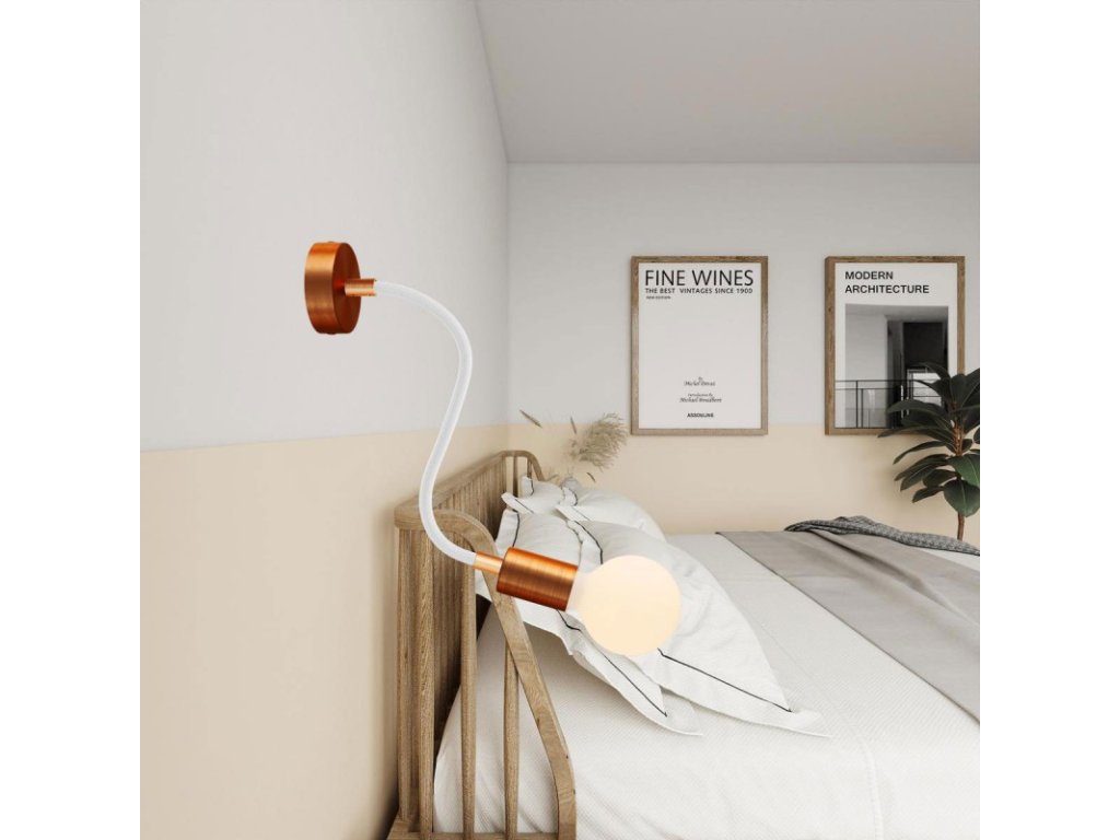A žili flexibilne až do smrti. FLEX je ohybná trubica potiahnutá striebornou textíliou a je ideálna pre vytváranie jednoduchých svietidiel i lustra s viacerými svetlami, ktoré sú inšpirované najodvážnejšími nápadmi, tými vašimi. Buďte kreatívni a navrhnite si svoj vlastný systém osvetlenia. So systémom FLEX, nastaviteľnou ohybnou trubicou s koncovou svorkou, ktorá je k dispozícii v 5 povrchových úpravách (matná biela, čierna, matná bronzová, matná medená a matná chrómovaná), môžete svoj osvetľovací systém meniť, ako a kedy chcete. Popustite uzdu svojej fantázii a vytvorte tie najkrajšie lampy s FLEX To je flexibilita! Trubica FLEX je dostupná v troch dĺžkach (30 cm, 60 cm a 90 cm) as kovovými koncovými svorkami v piatich povrchových úpravách ((matná biela, čierna, matná bronzová, matná medená a matná chrómovaná).