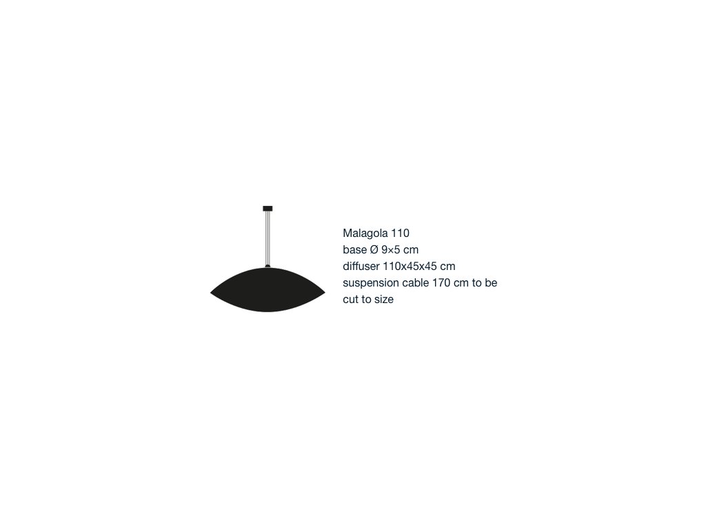 Designové závěsné ručně vyrobené LED svítidlo Malagola 110 k dispozici ve třech barevných variantách a to zlatá, stříbrná a měděná. Tělo svítidla je vyrobeno z kovu a stínidlo z hliníku. Rozměry základny činí  Ø 9×5 cm a rozměry stínidla činí  110x45x45 cm. Maximální délka kabelu činí 170 cm. Svítidlo vdechne Vašemu prostoru eleganci a příjemnou atmosféru. Svítidlo skvěle doplní styl obývacího pokoje, jídelny či ložnice.