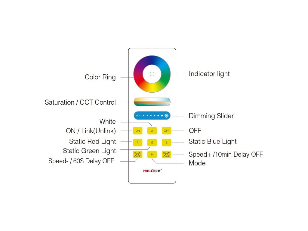 Diaľkový ovládač Mi-light - 1 kanál, RGB+CCT, 2.4GHz, FUT088