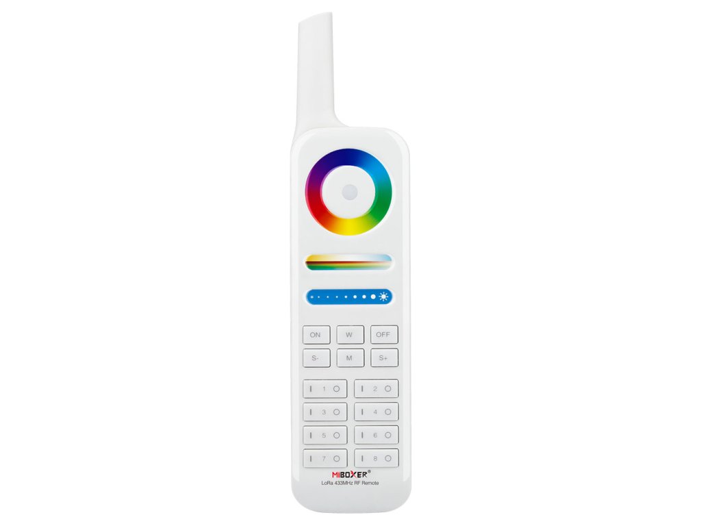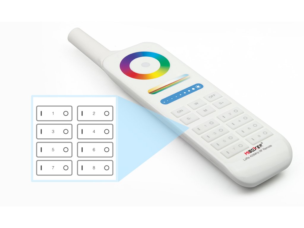 Multifunkčný 8-kanálový LED diaľkový ovládač zo série LoRA pre jednofarebné, RGB, RGBW aj RGB-CCT LED pásiky a svietidlá Mi-Light.