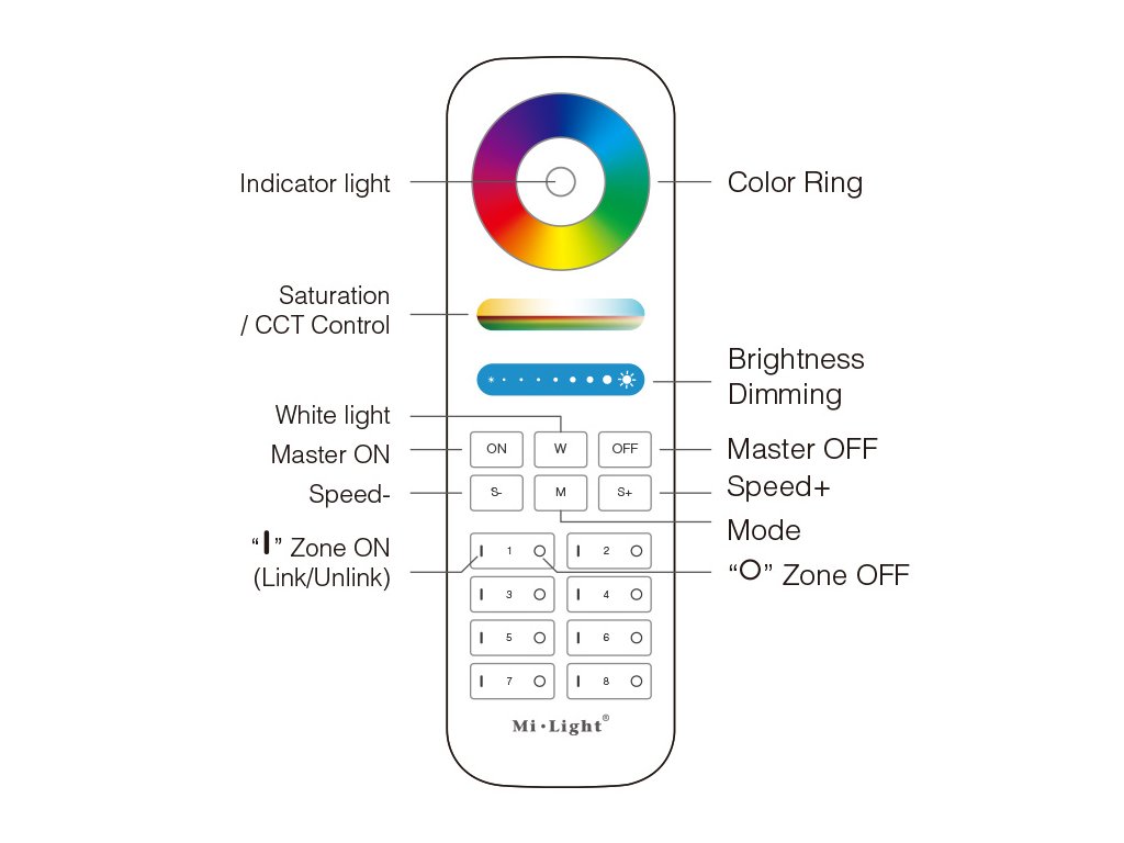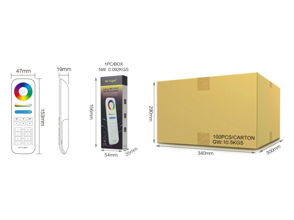 Diaľkový ovládač Mi-light - 8 kanálov, RGB+CCT, 2.4GHz, FUT089