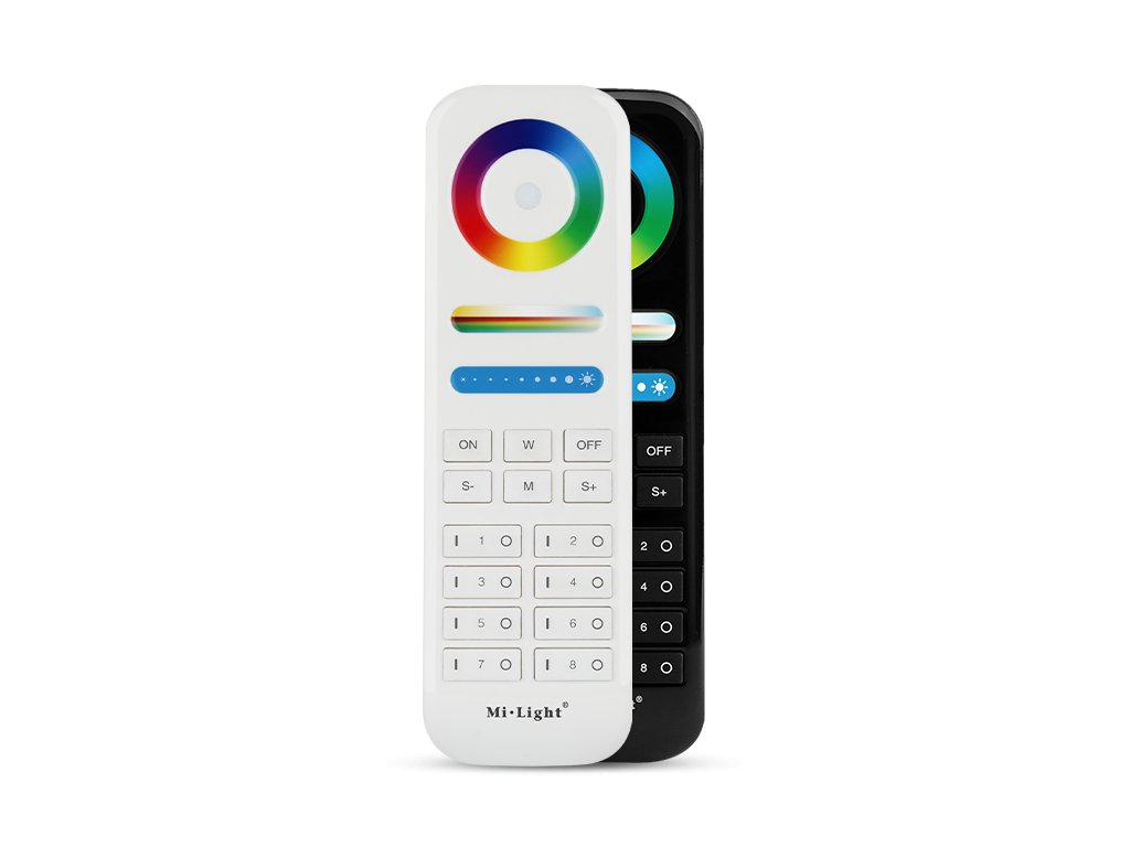 Multifunkčný 8-kanálový LED diaľkový ovládač pre jednofarebné, CCT, RGB, RGBW, RGB-CCT pásky a svietidlá Mi-Light.