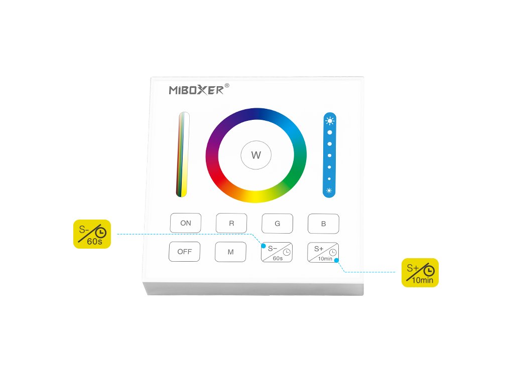 Multifunkčný nástenný LED ovládač pre jednofarebné, CCT, RGB, RGBW aj RGB+CCT LED pásiky a LED svietidiel Mi-Light