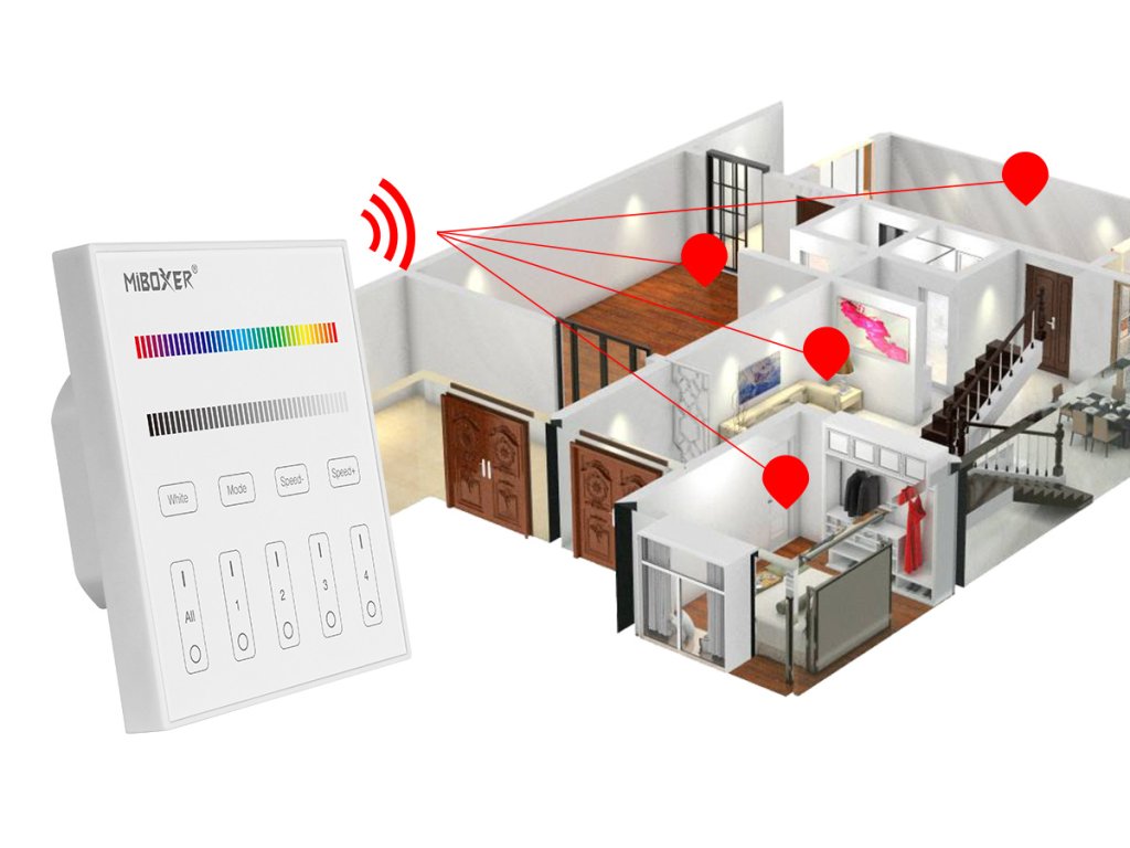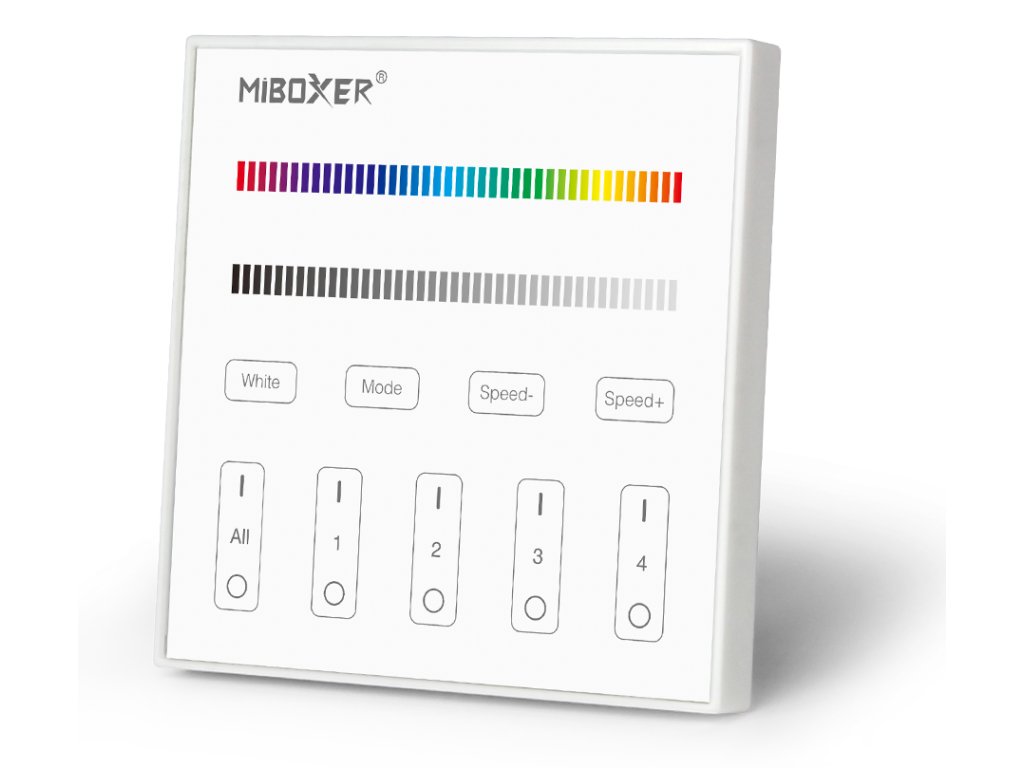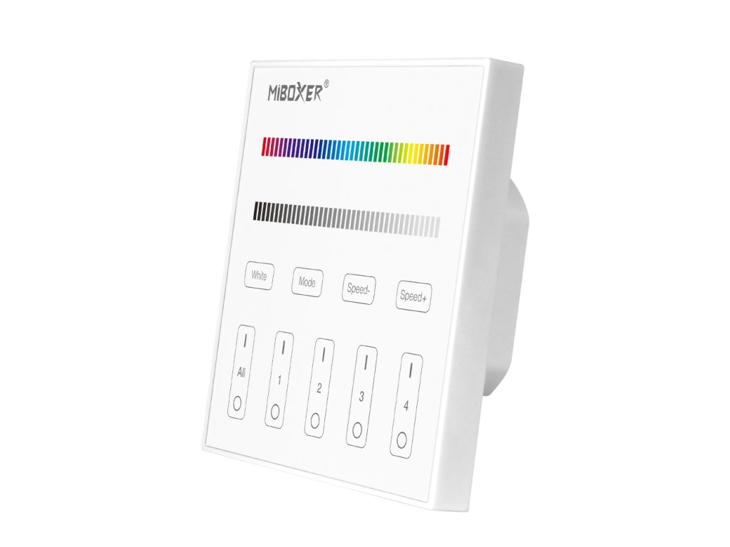 Bezdrôtový 4-kanálový nástenný LED ovládač pre ovládanie RGB a RGBW LED pásikov a LED svietidiel Mi-Light.