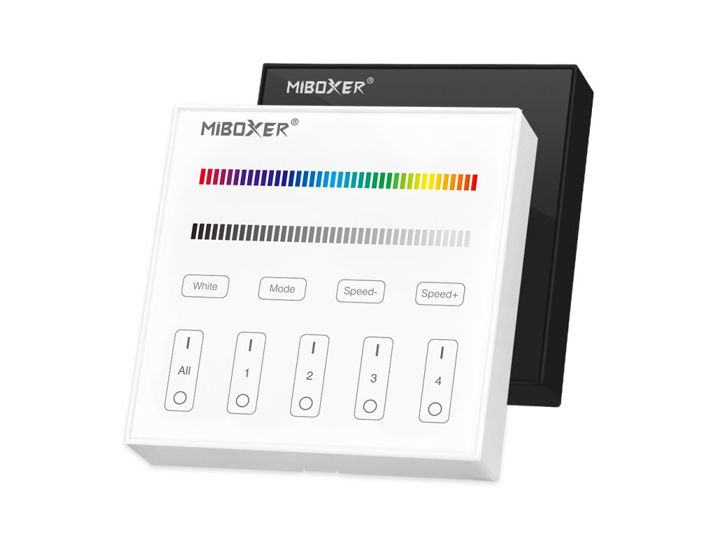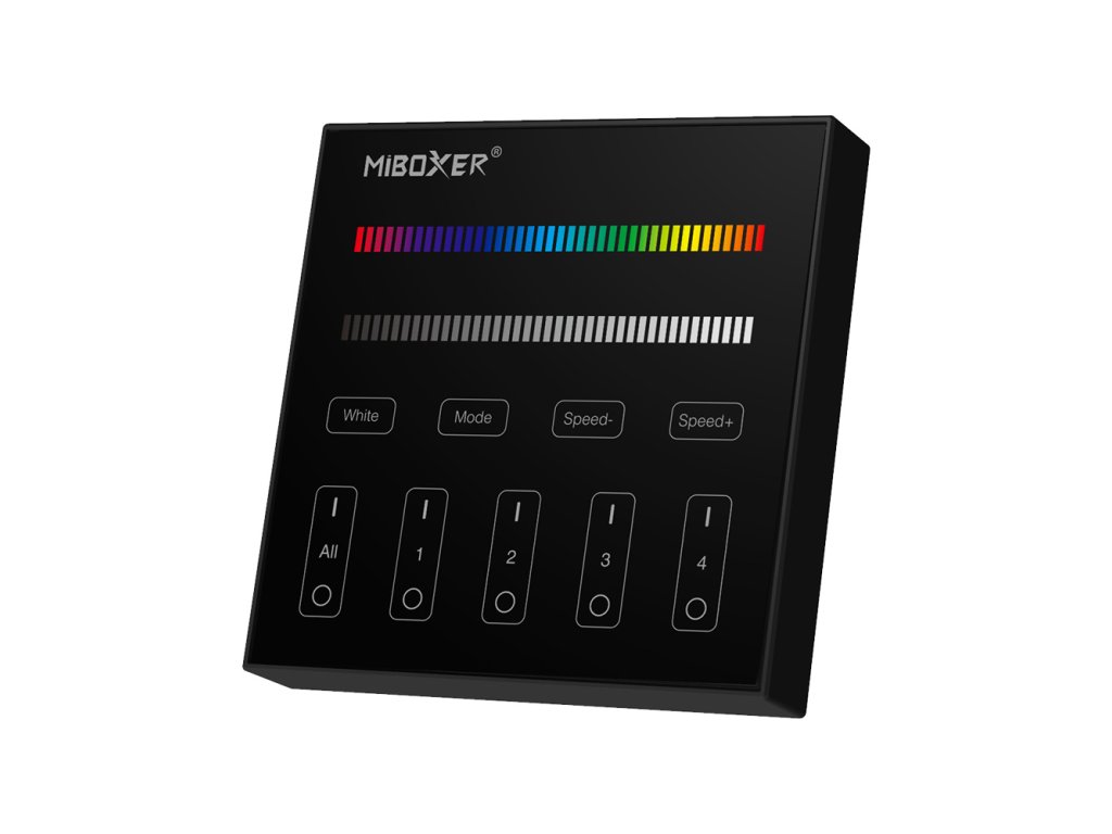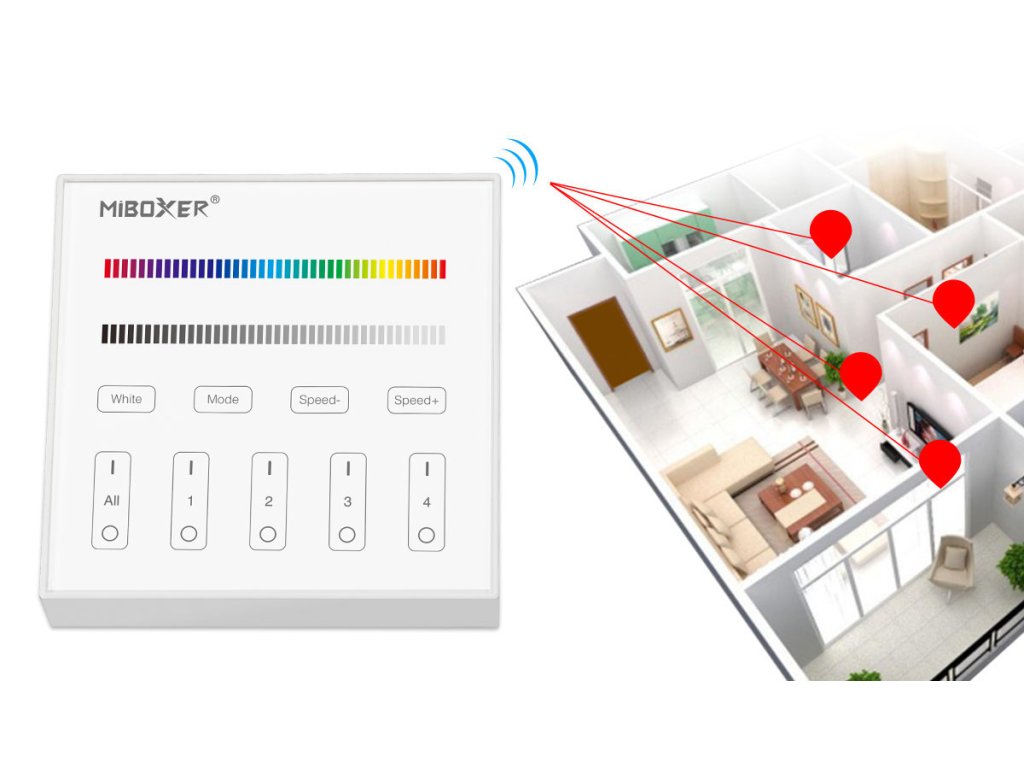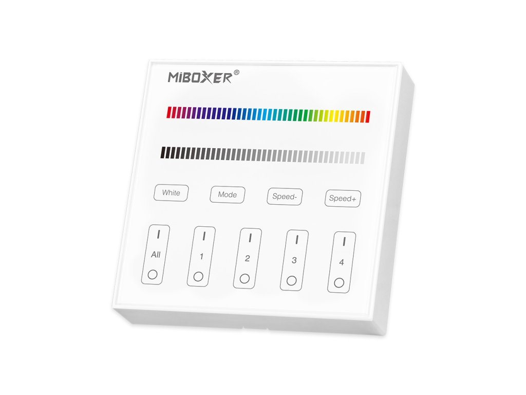 Bezdrôtový 4-kanálový nástenný LED ovládač pre ovládanie RGB a RGBW LED pásikov a LED svietidlá Mi-Light - na batérie.