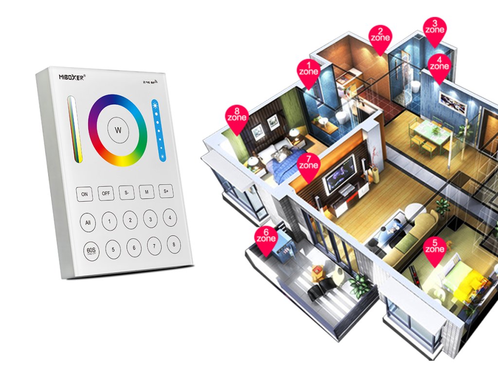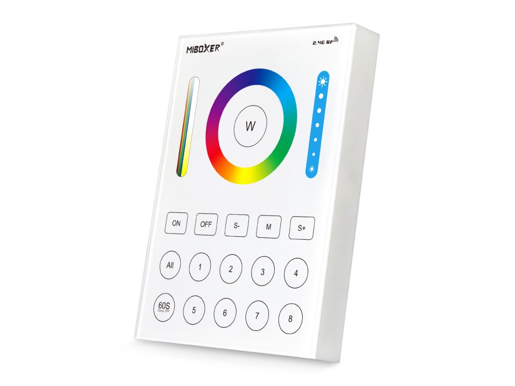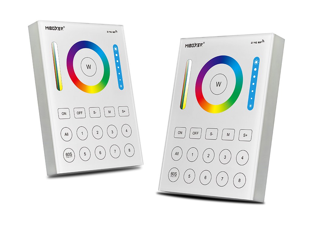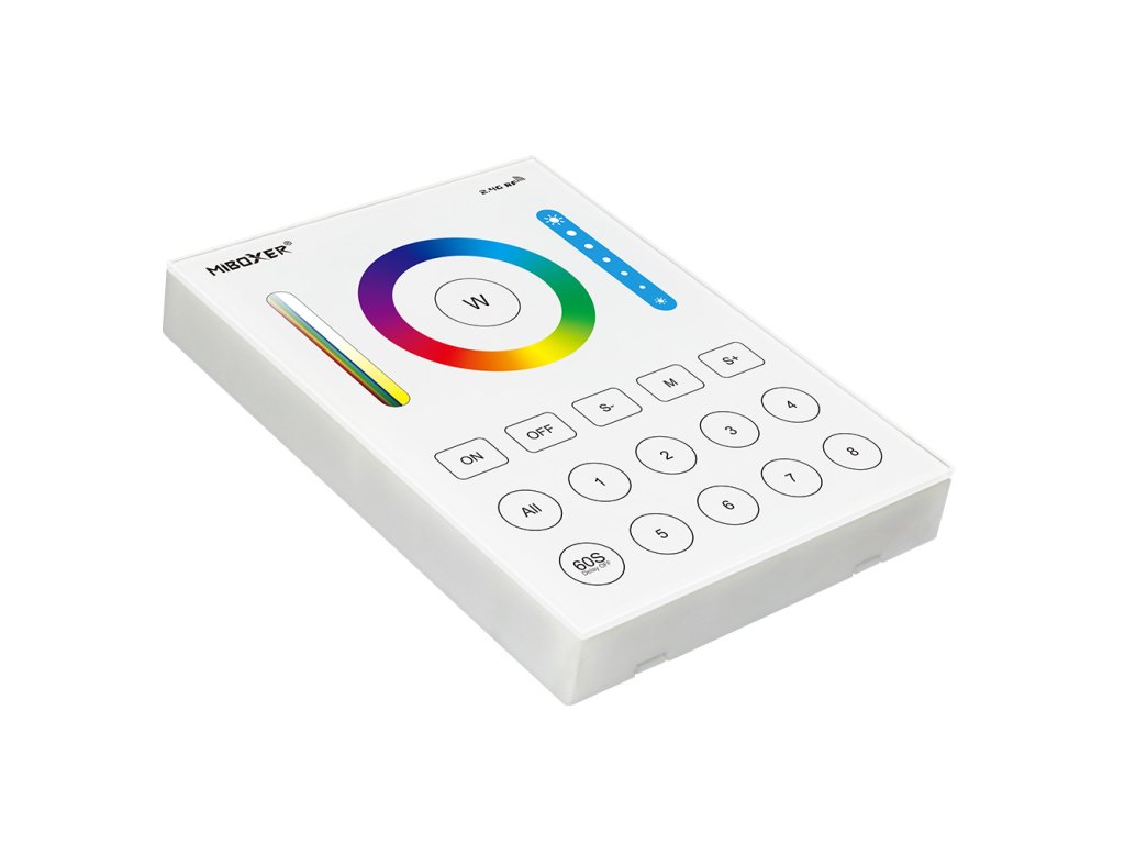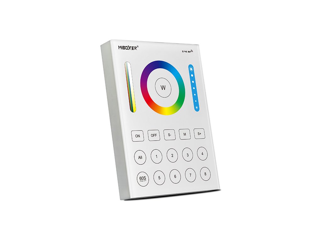 Multifunkčný nástenný 8-kanálový LED ovládač pre jednofarebné, CCT, RGB, RGBW aj RGB+CCT LED pásiky a LED svietidiel Mi-Light