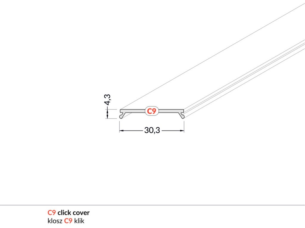 Transparentní difuzor se instaluje nacvaknutím. Dostupný je ve dvou velikostech- 1m, 2m.