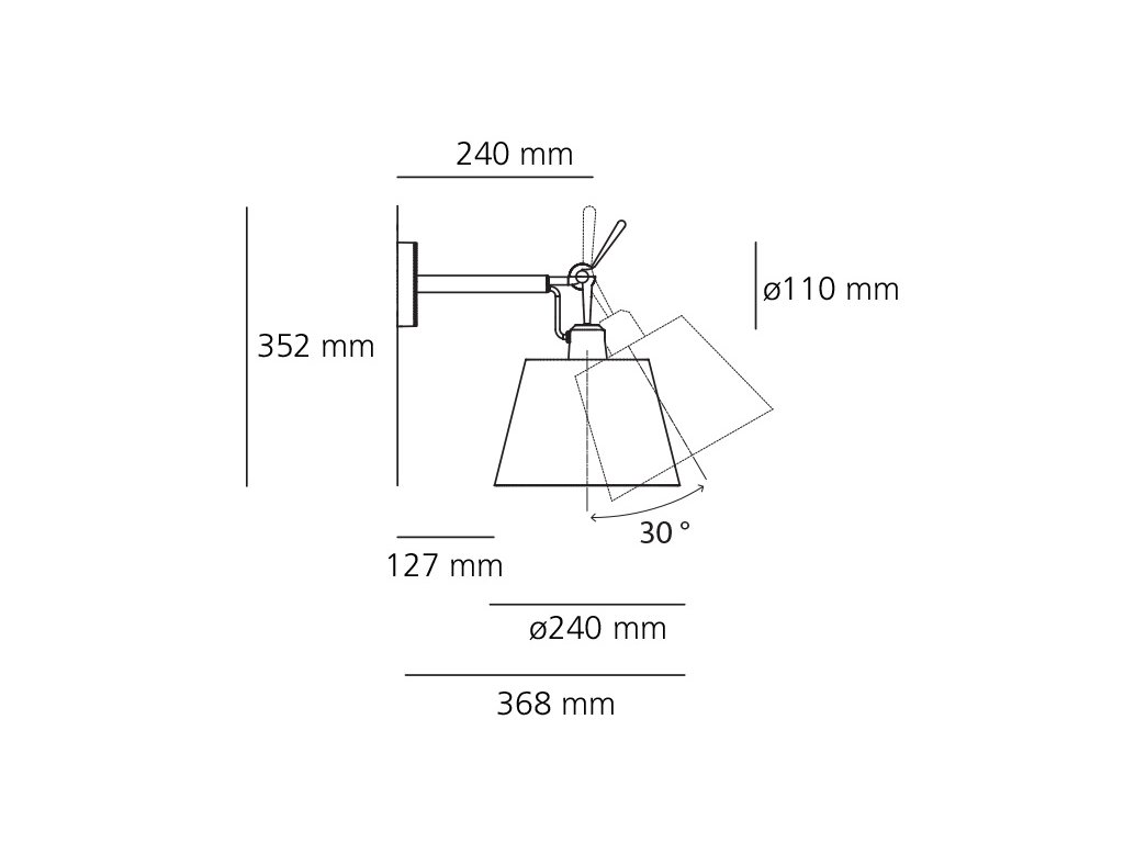 Lampa Tolomeo Difúzor, je pripevnená priamo na stenu. V stmievateľnej verzii sa lampa ovláda pomocou stmievača, ktorý je umiestnený na hlave alebo na ráme. Rameno a držiak na stenu sú z lešteného hliníka, difúzor z pergamenu alebo hodvábnej tkaniny na plastovom ráme. Táto lampa je ponúkaná v troch variantoch priemeru tienidla 18cm, 24cm a 32cm. V kolekcii sú aj stolné lampy alebo stojacie lampy, ďalšie nástenné lampy a mnoho ďalších variantov.ampa sa skvele hodí ako lampička na čítanie pri posteli alebo ako praktické pracovné svetlo pri pracovnom stole.