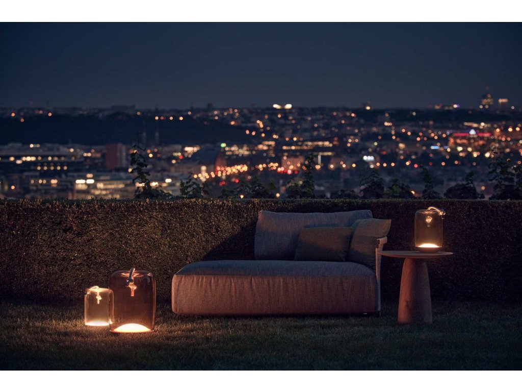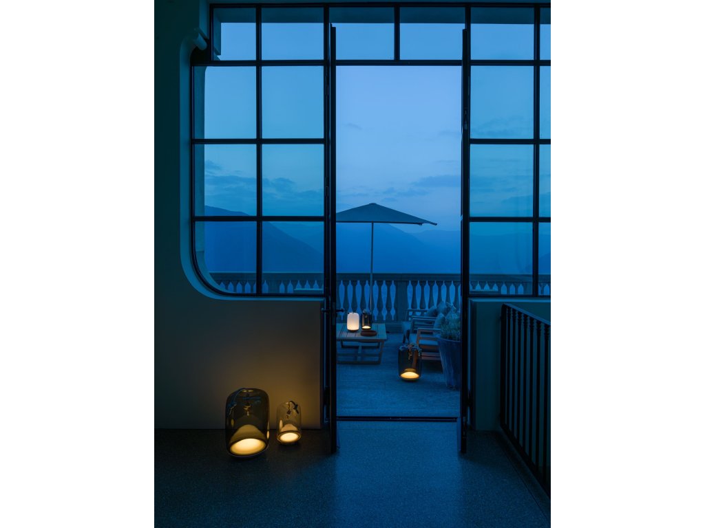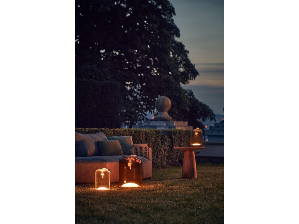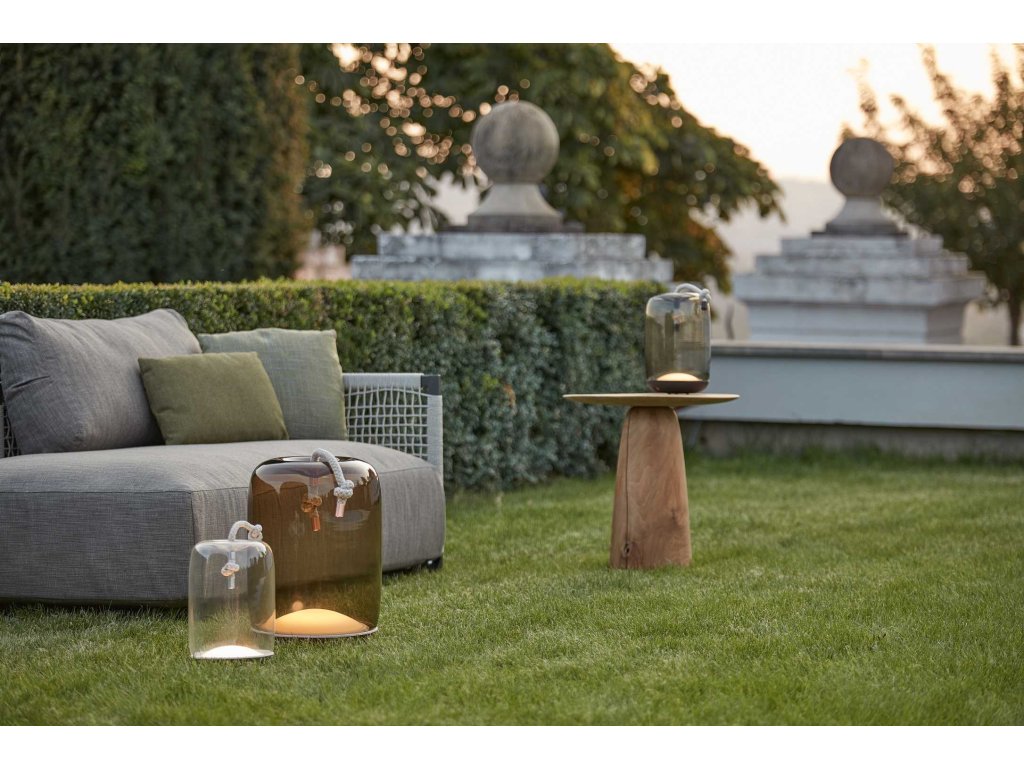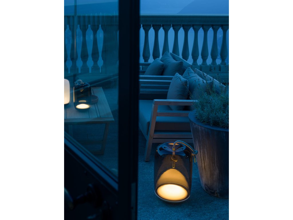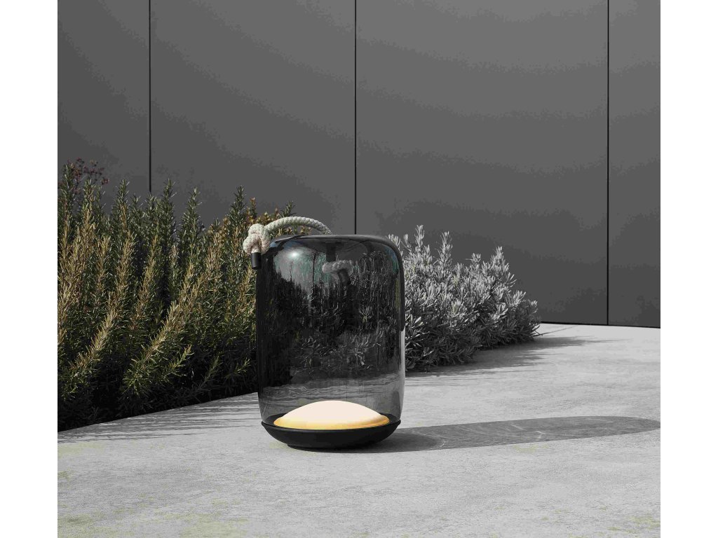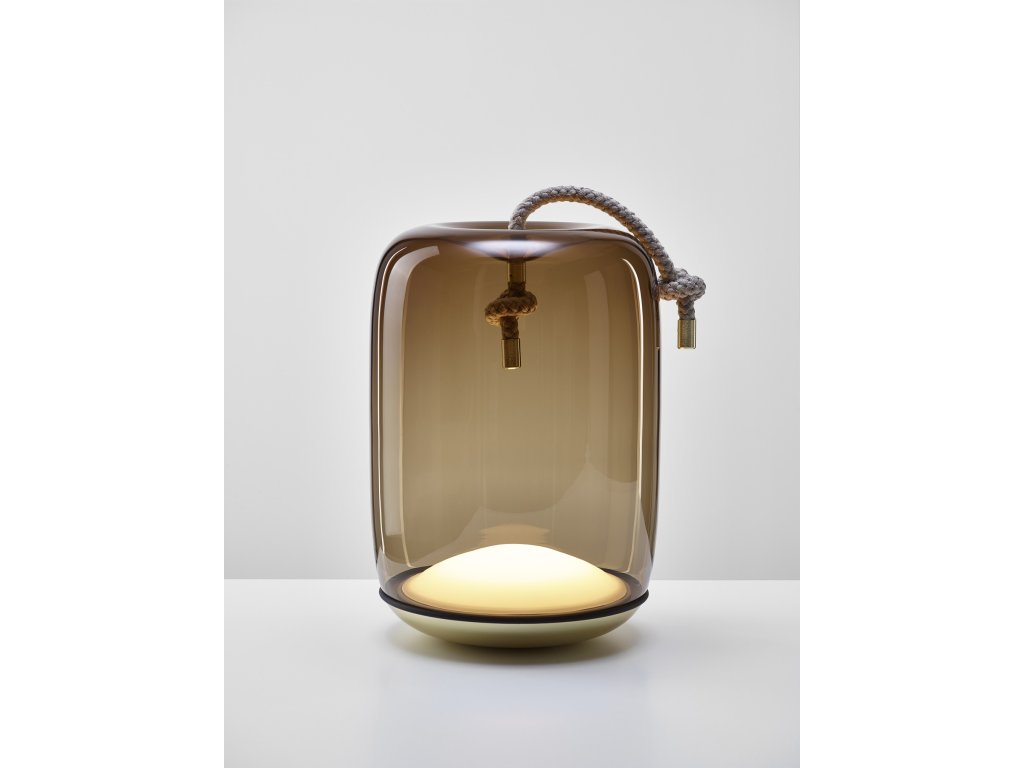 Kolekcia Knot spája dva odlišné materiály, dva odlišné princípy – mäkkosť oblých kriviek priezračného fúkaného skla a prísnosť vypnutého režného lana. Výsledný dizajn je prekvapivý, priamočiary a dôstojný zároveň. Knôt Battery je prenosné svietidlo s batériou, ktorá umožňuje svietenie po dobu približne 4,5 hodiny pri plnom jase. LED modul je integrovaný do kovovej podstavy svietidla.