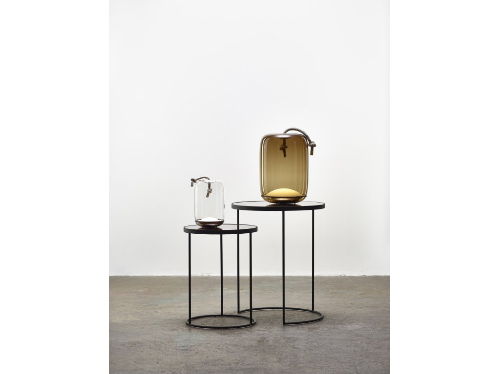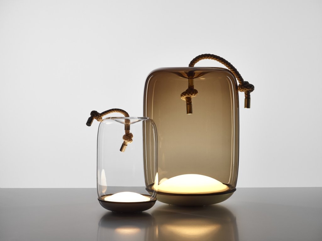 Kolekcia Knot spája dva odlišné materiály, dva odlišné princípy – mäkkosť oblých kriviek priezračného fúkaného skla a prísnosť vypnutého režného lana. Výsledný dizajn je prekvapivý, priamočiary a dôstojný zároveň.