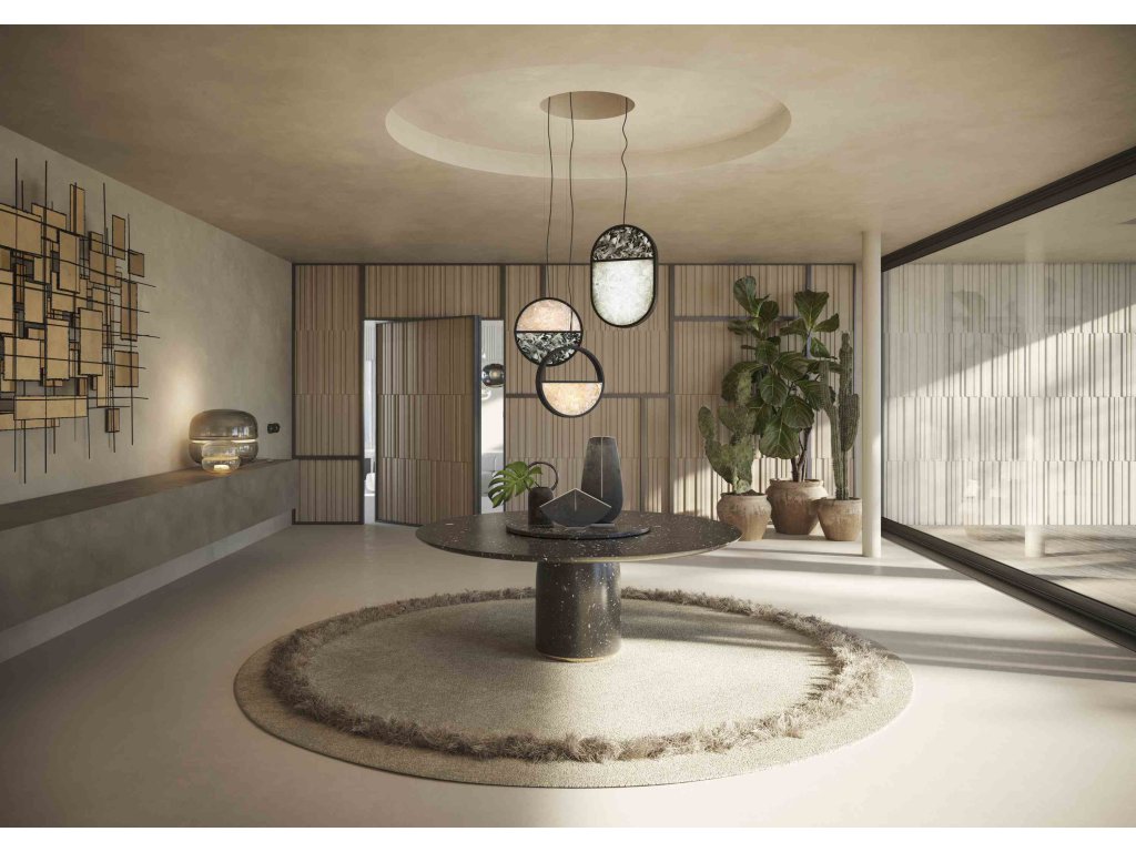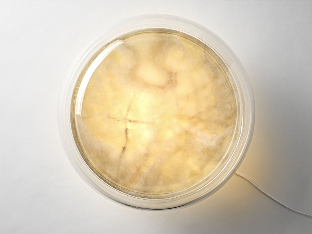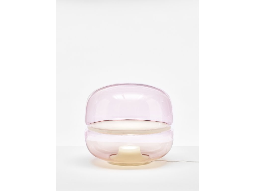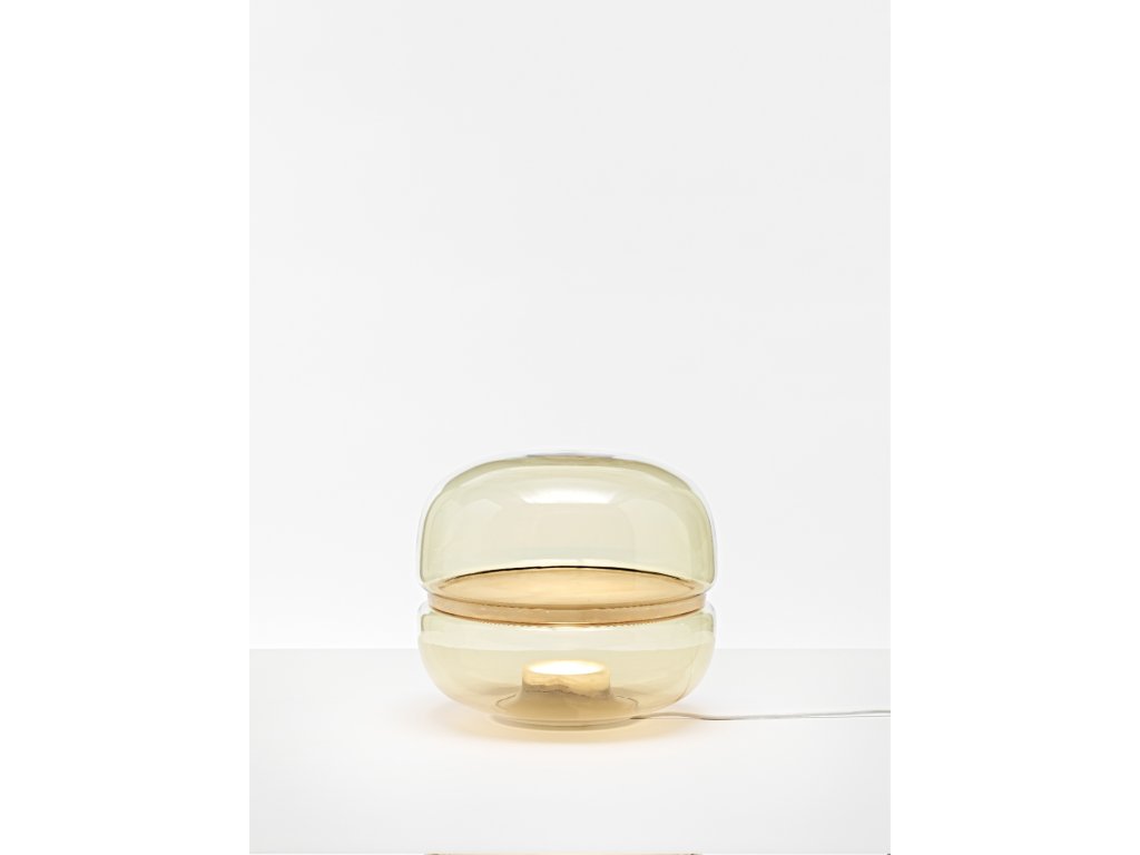 Dizajnová  lampa Brokis Macaron, navrhnutá a pomenovaná podľa svojho tvaru, ktorý pripomína makrónku, je jedinečná nielen svojím tvarom, ale aj spôsobom, akým je navrhnutá. Lampa má svetelný zdroj v spodnej časti priehľadnej lampy a svieti nahor. Tento smer svetla vytvára fascinujúci efekt a jedinečný spôsob vyžarovania svetla. Každé svietidlo Macaron je jedinečné, zdôrazňuje prirodzené nedokonalosti skla a rozmanité kamenné štruktúry a oslavuje čistotu týchto materiálov a starostlivé remeselné spracovanie. Kolekcia Macaron je k dispozícii v troch veľkostiach, pričom najväčší variant slúži ako výrazné stojacie svietidlo, a rôznych farbách skla s možnosťou výberu bieleho alebo medového onyxu. Ponúka tiež verziu so centrálnou doskou BROKISGLASS a drevenou základňou, čo dodáva všestrannosť a nádych prirodzenej elegancie každému priestoru.
