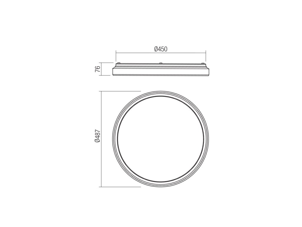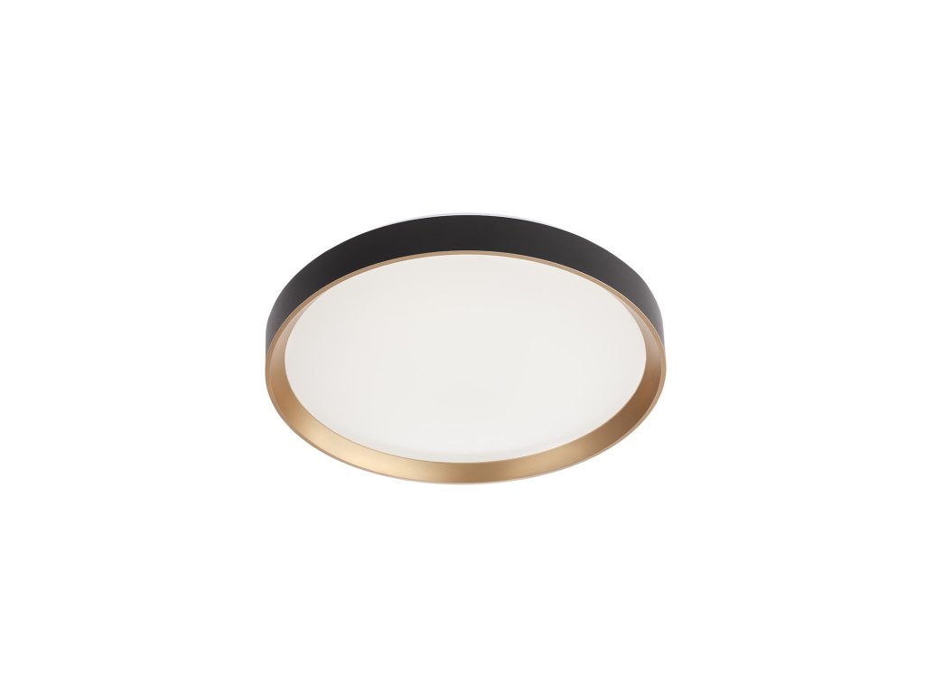 Vnútorné stropné svietidlo vybavené SMD LED diódami, kovová konštrukcia lakovaná matnou bielou farbou, opálový akrylátový difúzor s PMMA rámčekom, zvonku lakovaný čierno a zvnútra matne zlato.