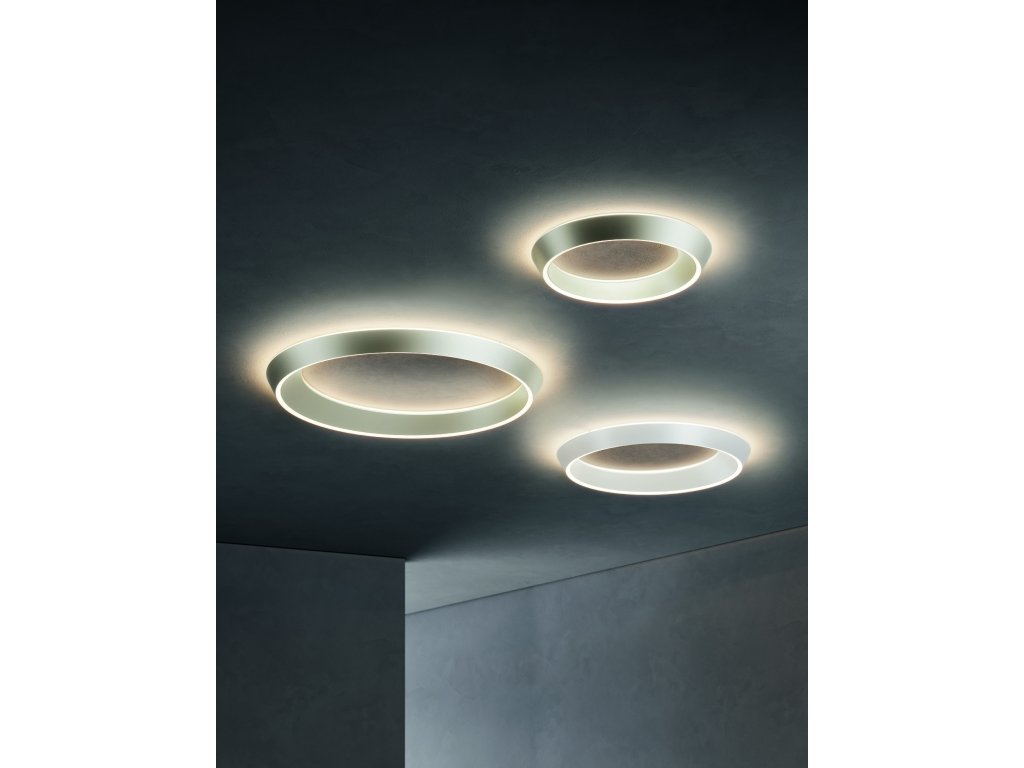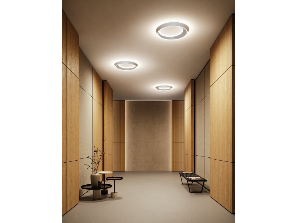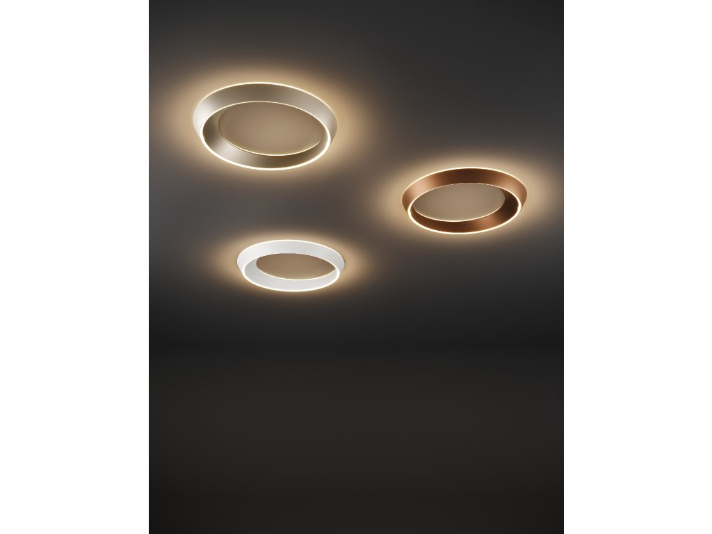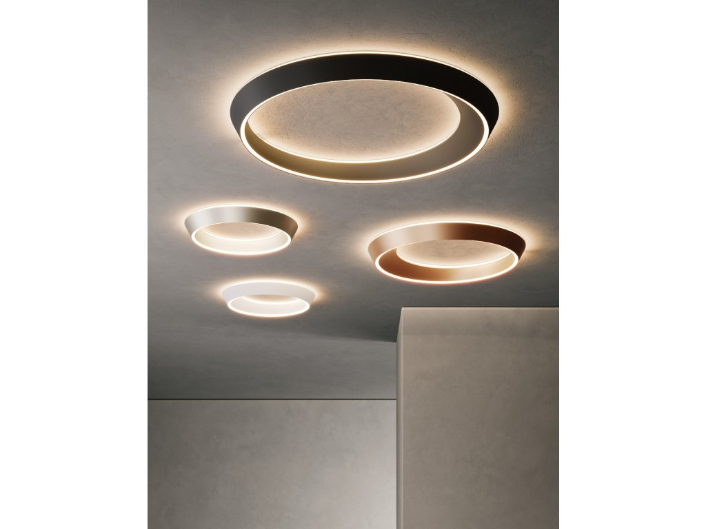 TIDAL je elegantné stropné aj závesné svietidlo v tvare prstenca, ktoré evokuje pohyb prílivu, morských vĺn a vesmírnych telies. Jeho plynulý, oválny tvar s asymetrickým profilom – kde je jedna strana širšia ako druhá – vytvára dynamický vizuálny dojem, ktorý sa mení v závislosti od uhla pohľadu.