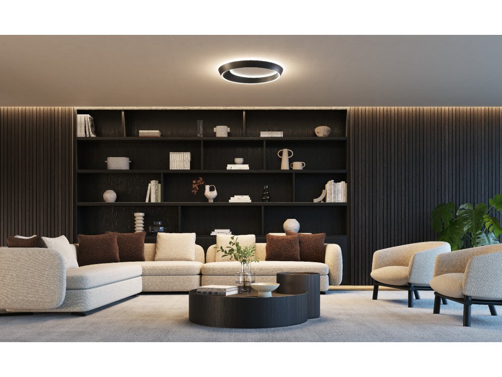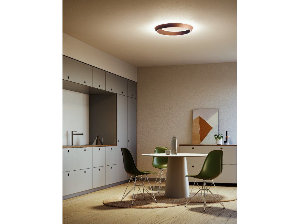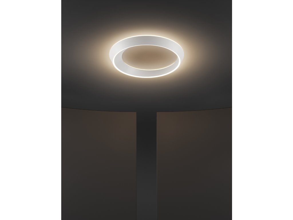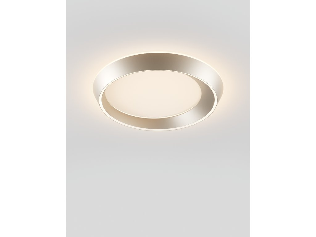 TIDAL je elegantné stropné aj závesné svietidlo v tvare prstenca, ktoré evokuje pohyb prílivu, morských vĺn a vesmírnych telies. Jeho plynulý, oválny tvar s asymetrickým profilom – kde je jedna strana širšia ako druhá – vytvára dynamický vizuálny dojem, ktorý sa mení v závislosti od uhla pohľadu.