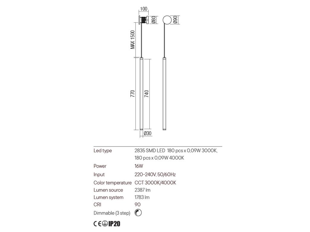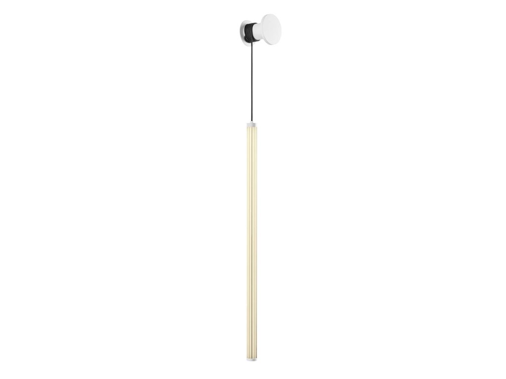 Interiérové nástenné svietidlo vybavené LED diódami SMD s možnosťou voľby teploty farby svetla a stmievania. Hliníková a kovová lakovaná konštrukcia a textilný kábel v dvoch farebných kombináciách, z vonkajšej strany priehľadný štruktúrovaný akrylátový difúzor s opálovo bielou silikónovou trubicou vo vnútri.